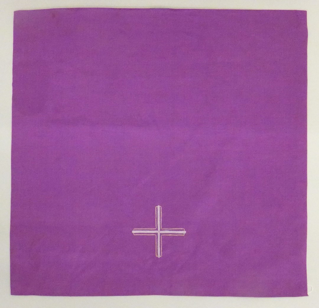 Paars kelkvelum met geborduurd kruisje