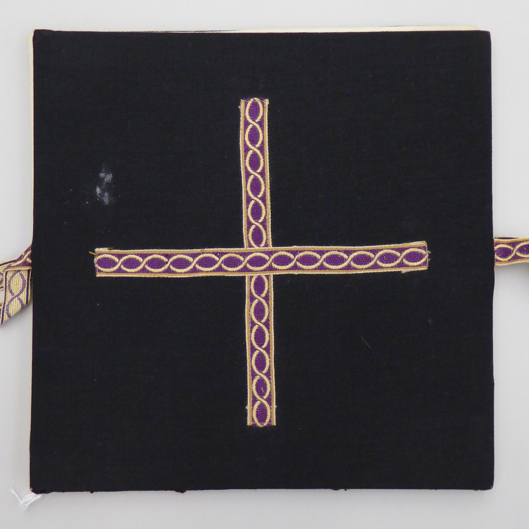 Zwarte beurs met paars-geel galonkruisje