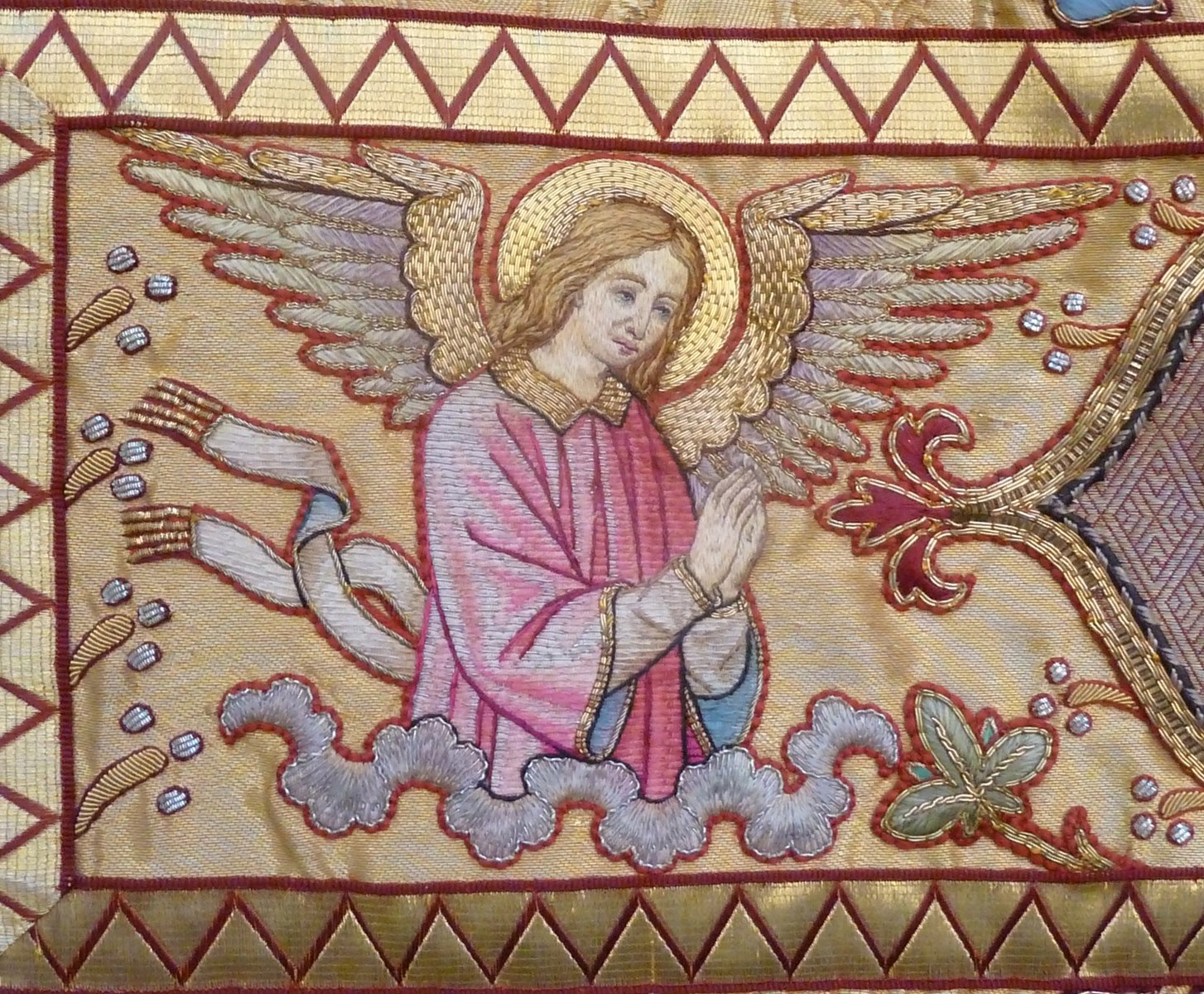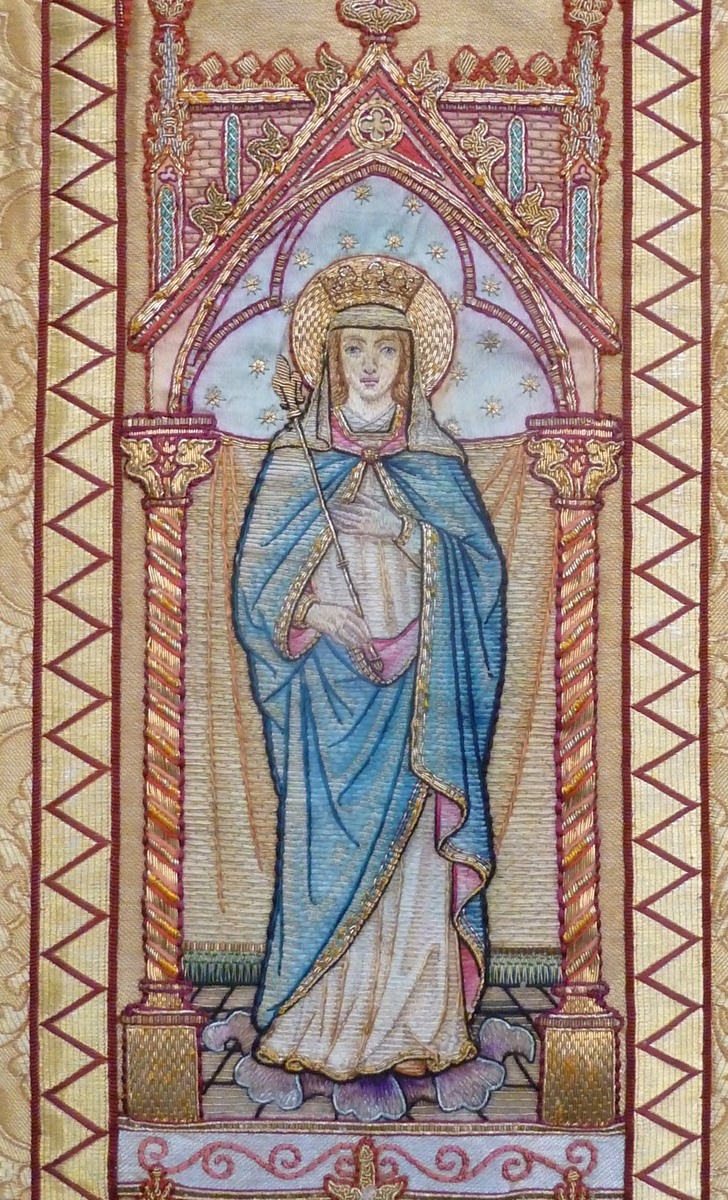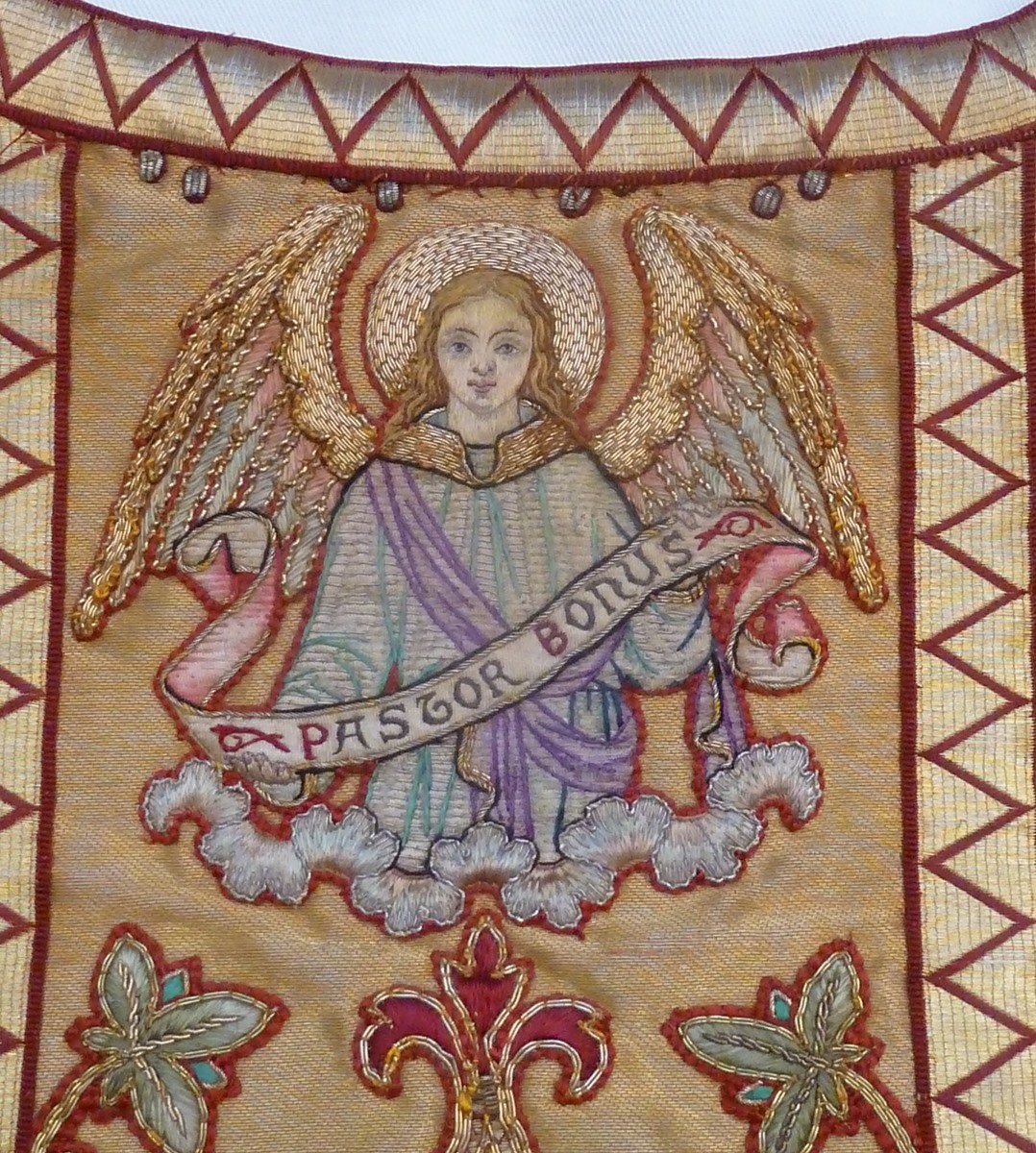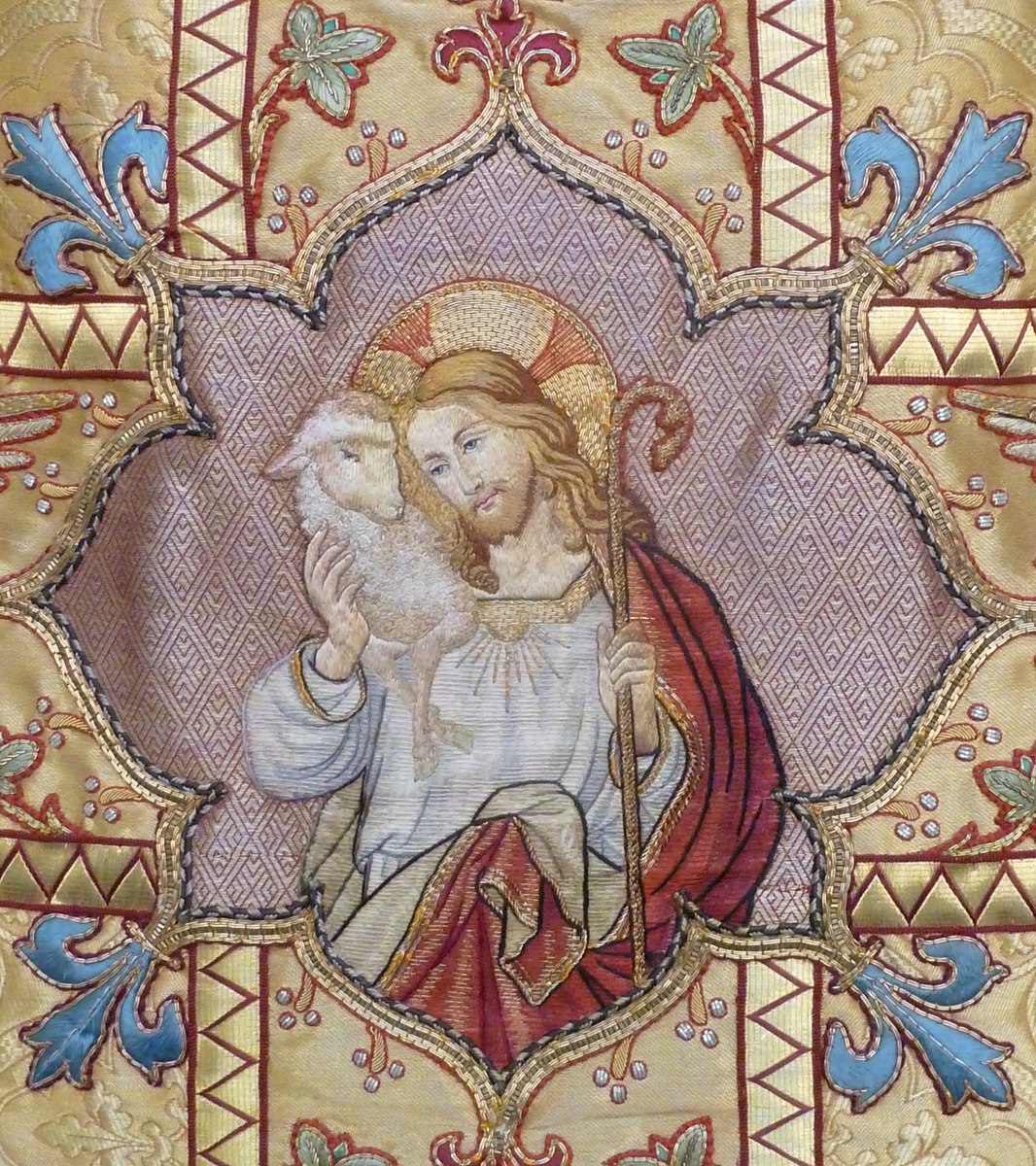 Goudkleurig kazuifel met Johannes Evangelist en dominicaan, op achterzijde de Goede Herder