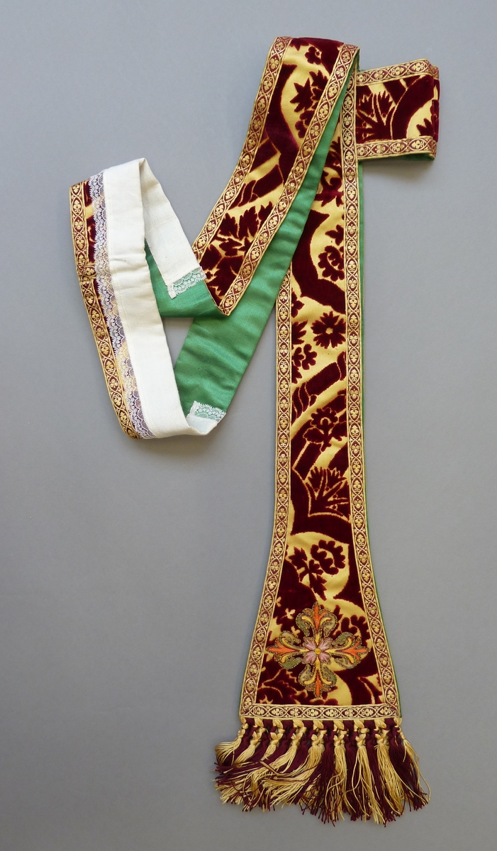 Rode preekstola met tussenstuk, groene voering