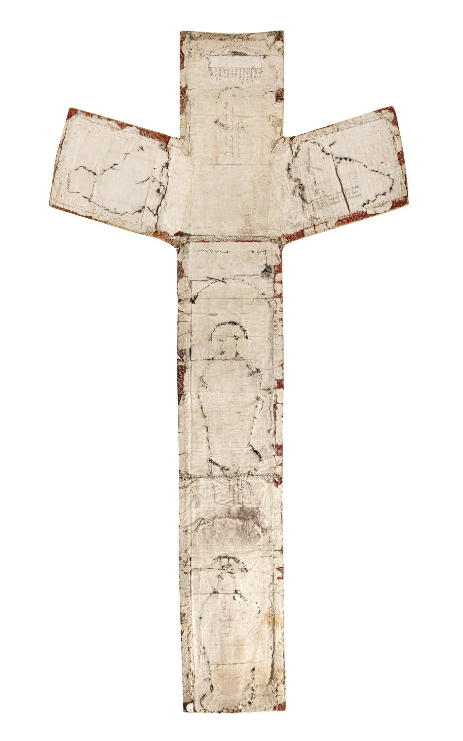 Gaffelkruis met uitgespaarde figuren, ondertekeningen, met missaalpagina's en brieven
