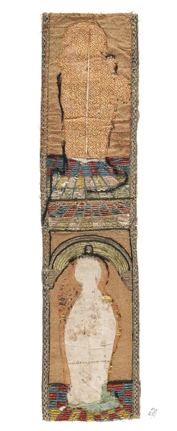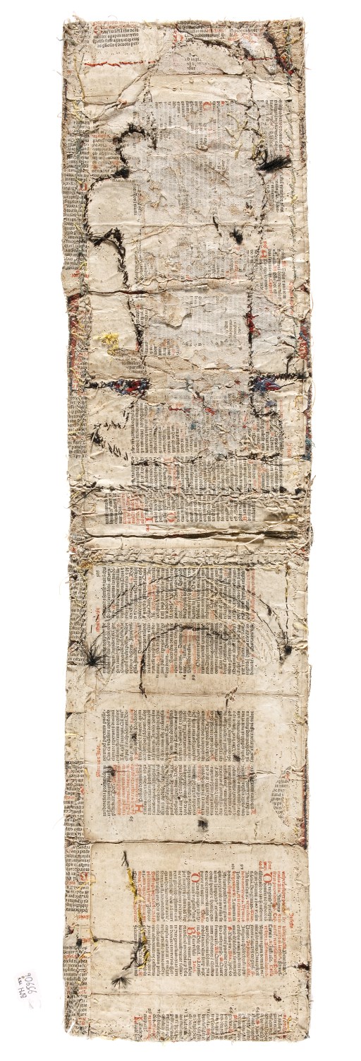 Kazuifelkolom met uitgespaarde figuren, ondertekeningen, verstevigingen missaalpagina's