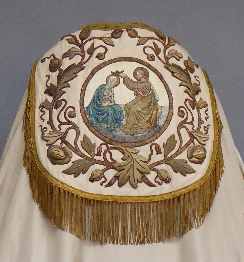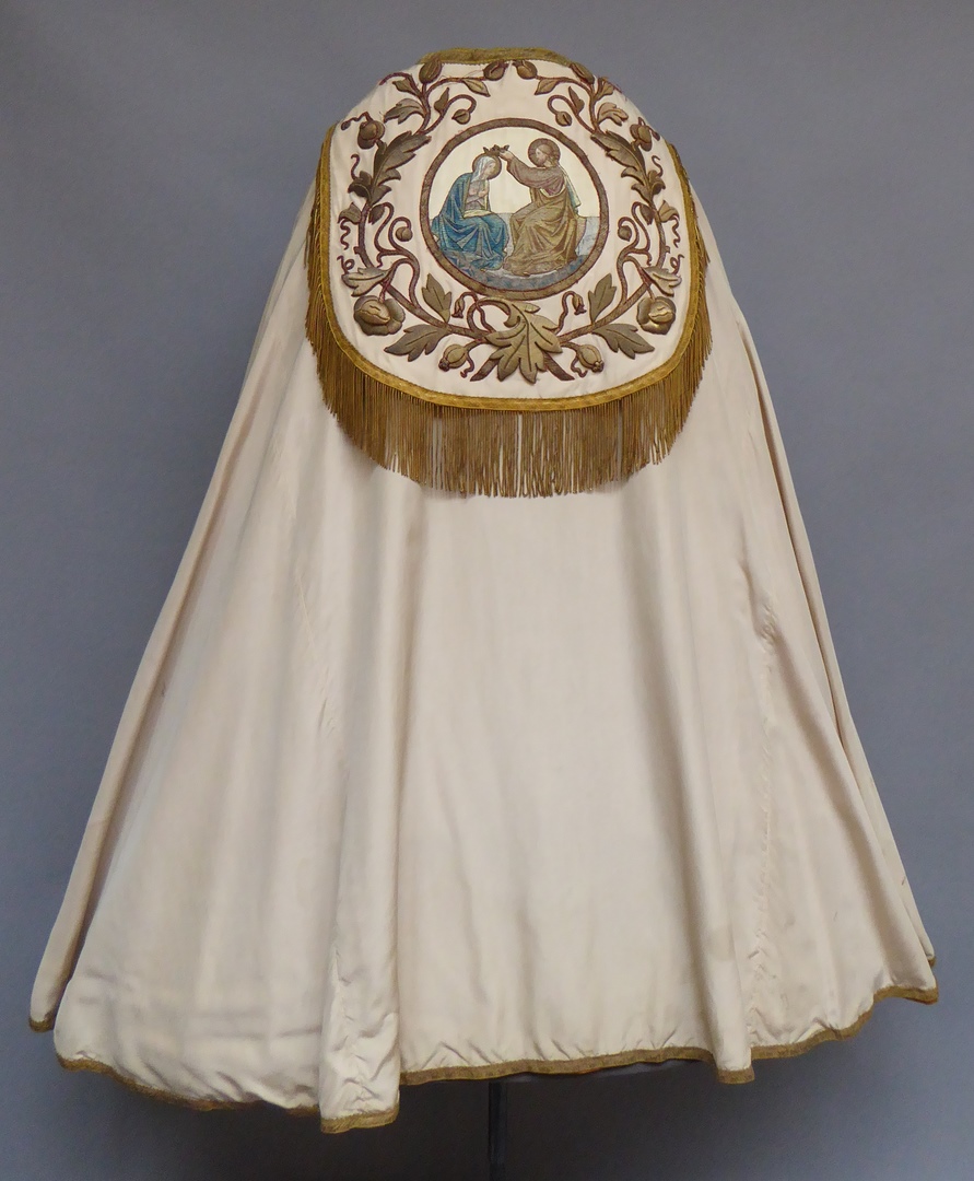Koorkap met op schild kroning van Maria, gele voering