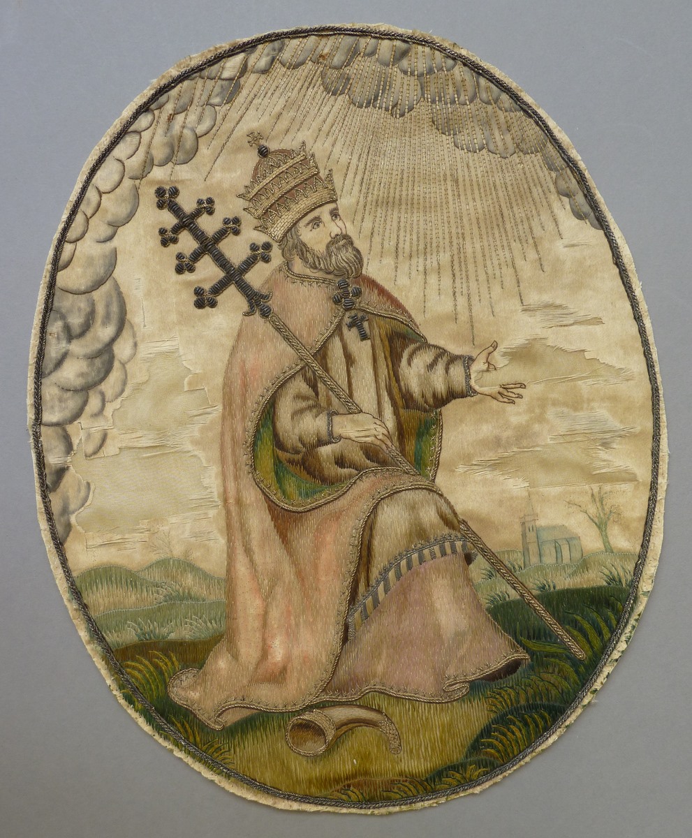 Borduursel met H. Cornelius met staf, hoorn aan zijn voeten