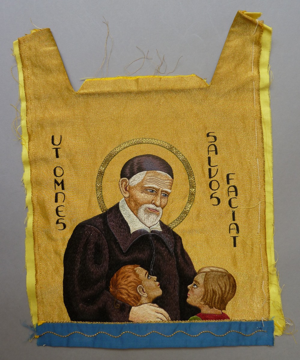Borduursel met Vincentius a Paolo, met "Ut omnes salvos faciat"