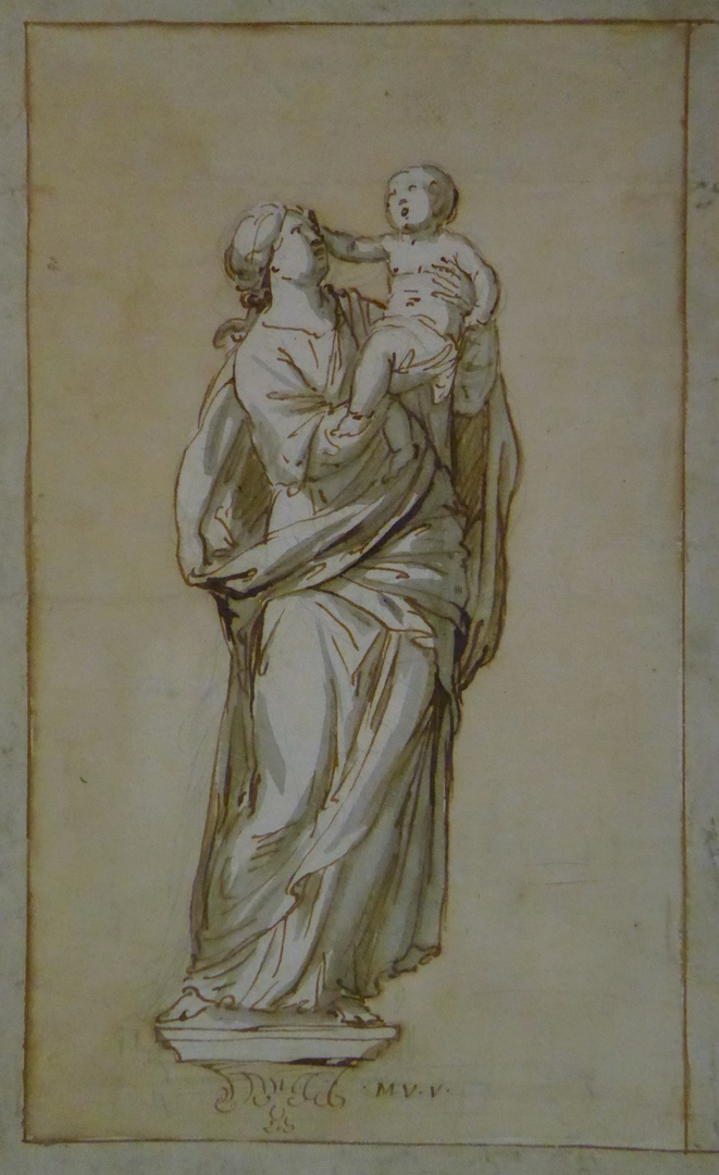 Beeld van een Maria met kind op voetstuk