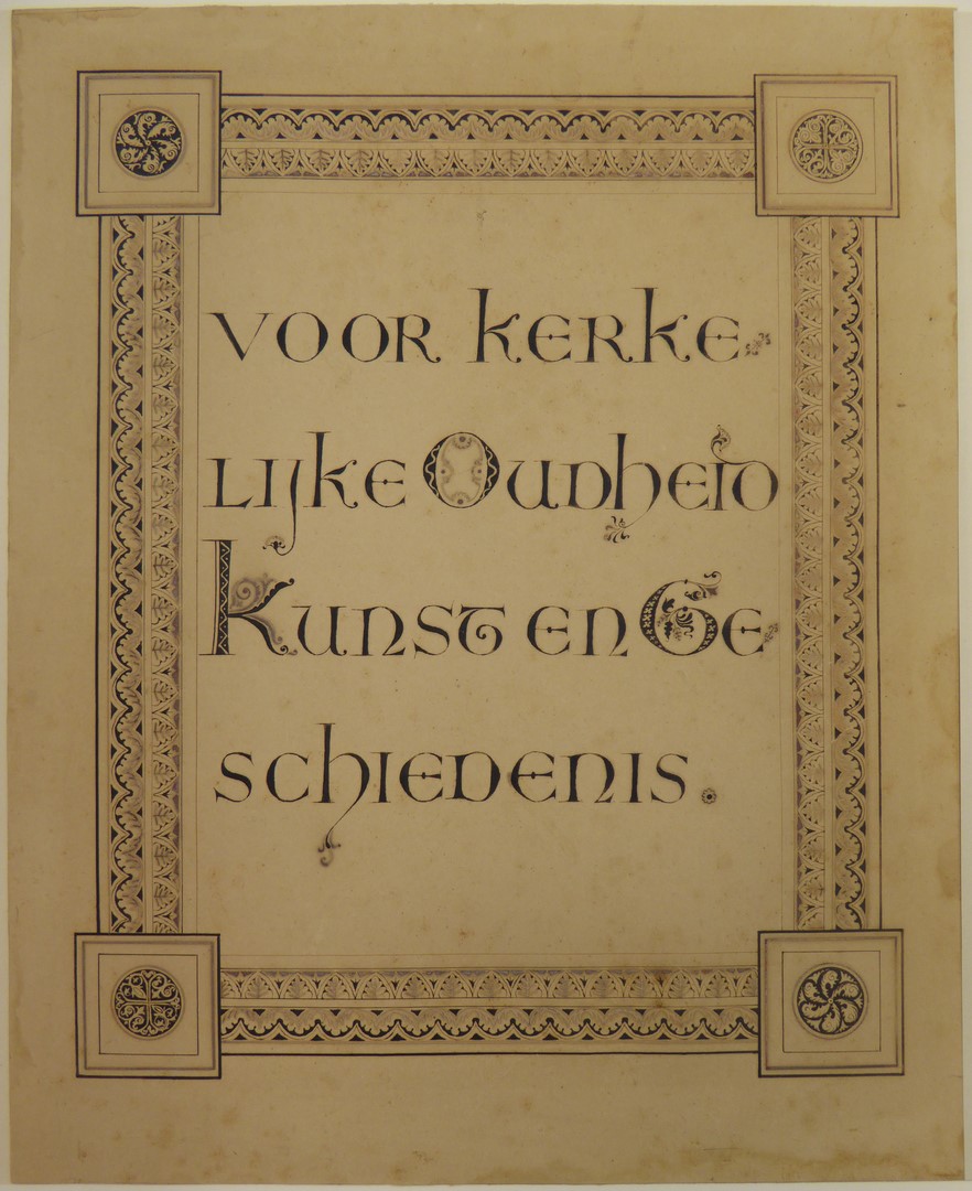 Raambord Bisschoppelijk Museum Haarlem met "voor kerkelijke oudheid kunst en geschiedenis"