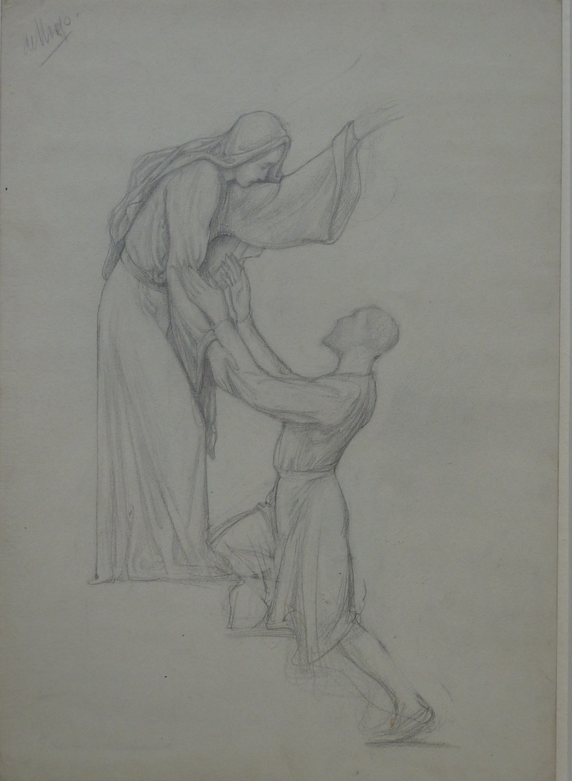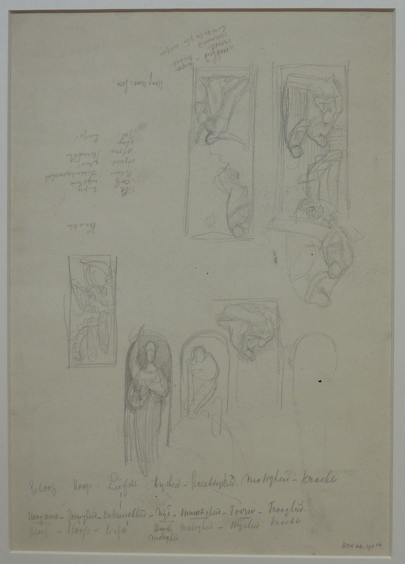 Ontwerp geveldecoratie Rozenkranskerk, detail, 'de hoop', een man knielt voor een vrouw