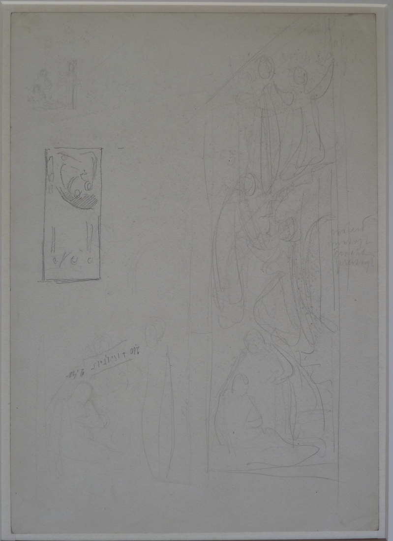 Ontwerp geveldecoratie Rozenkranskerk, detail, schets