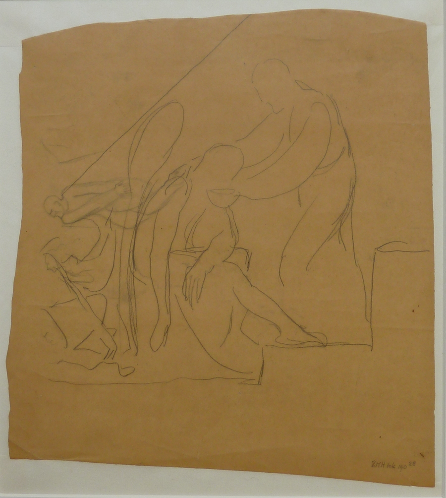 Ontwerp geveldecoratie Rozenkranskerk, detail, schets van twee figuren (de Liefde?)