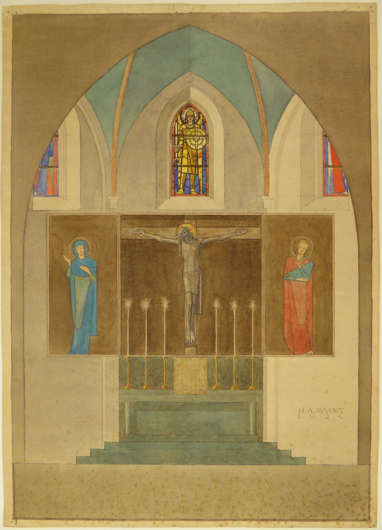 Ontwerp altaar met voorstelling Calvarie