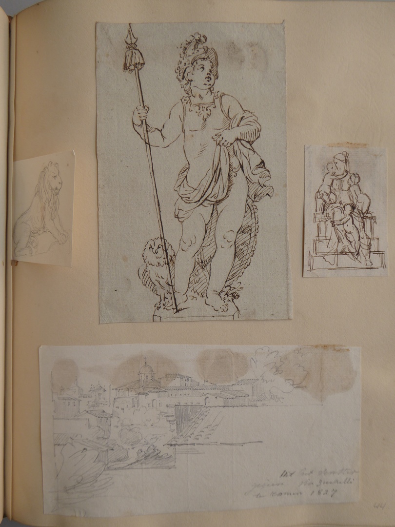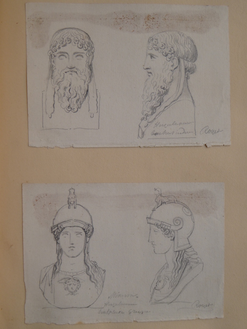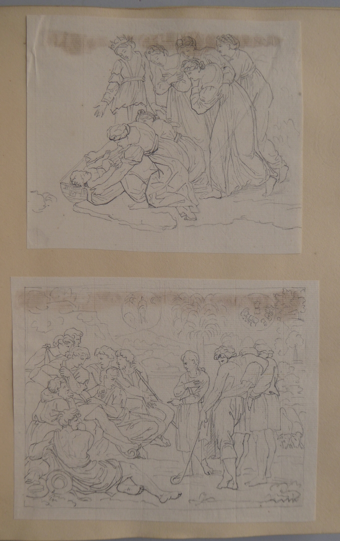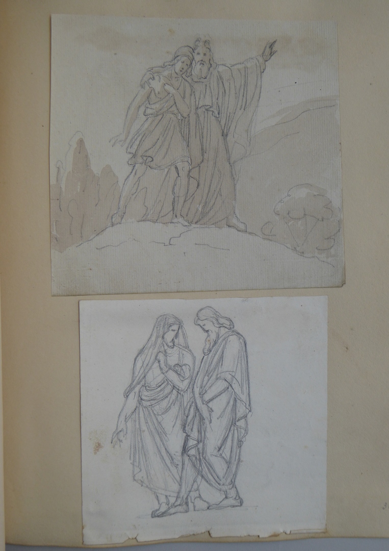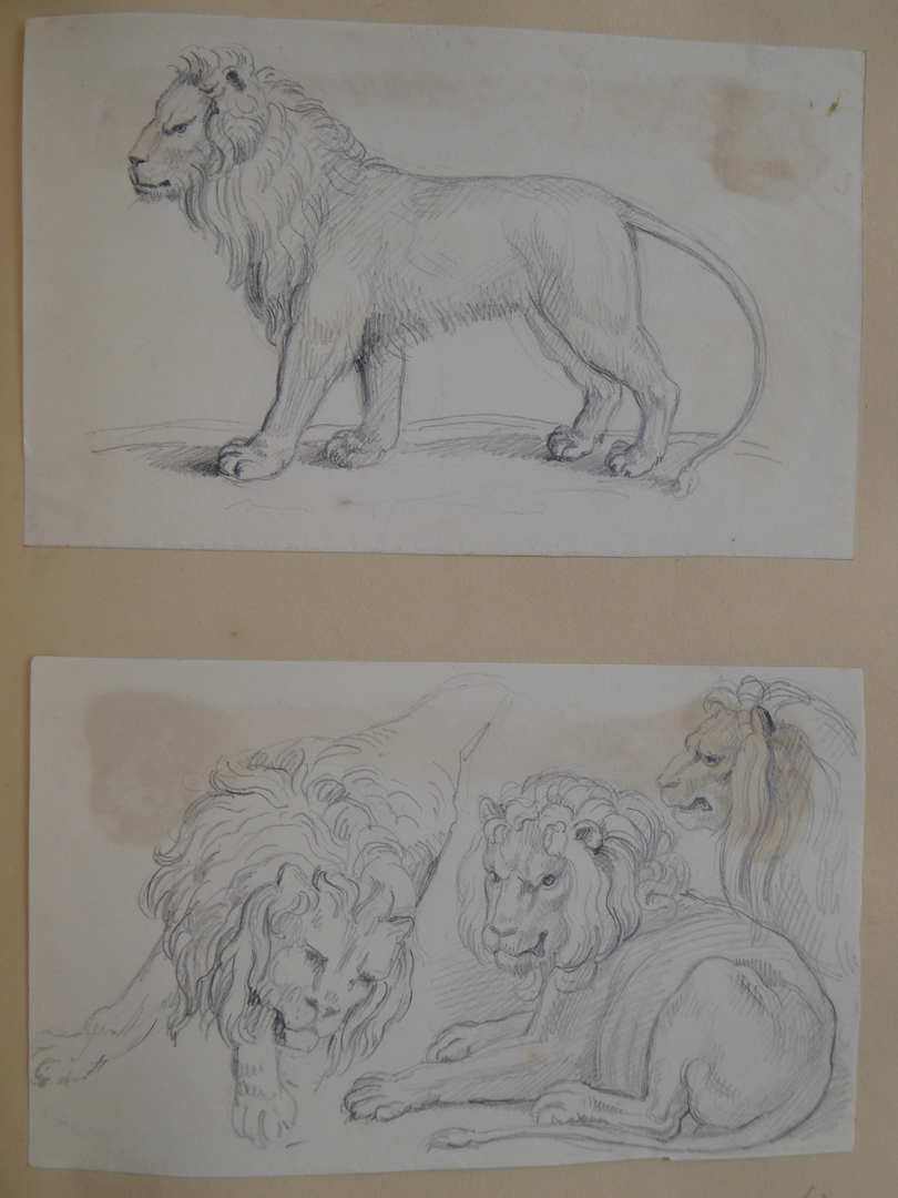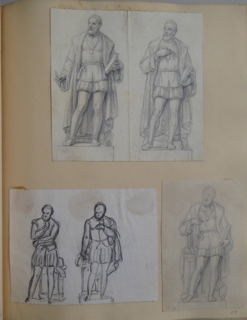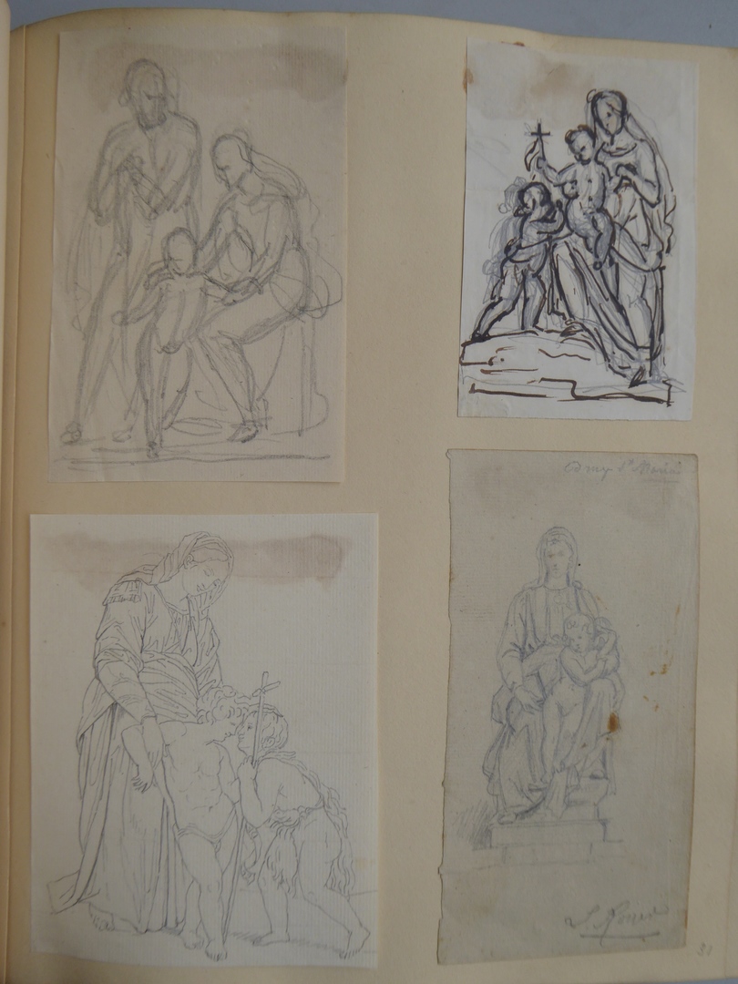 106 schetsen van Louis Royer en 61 schetsen van Jan Meeuwissen geplakt in groen album