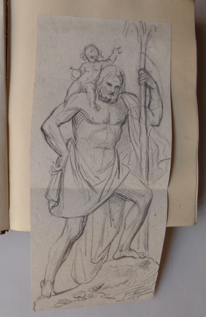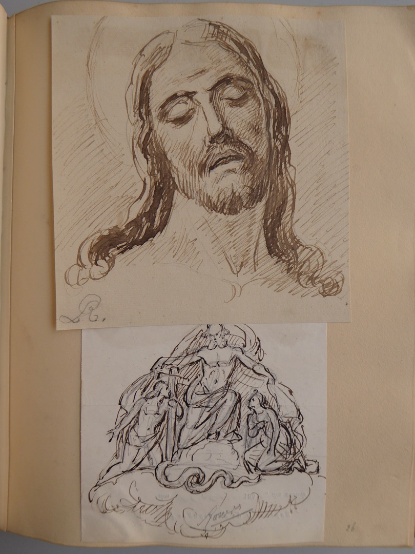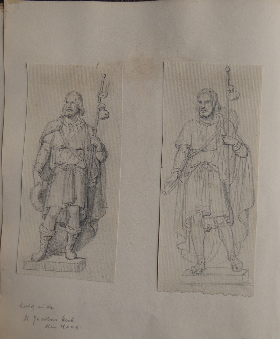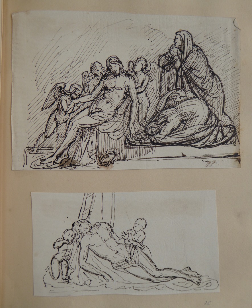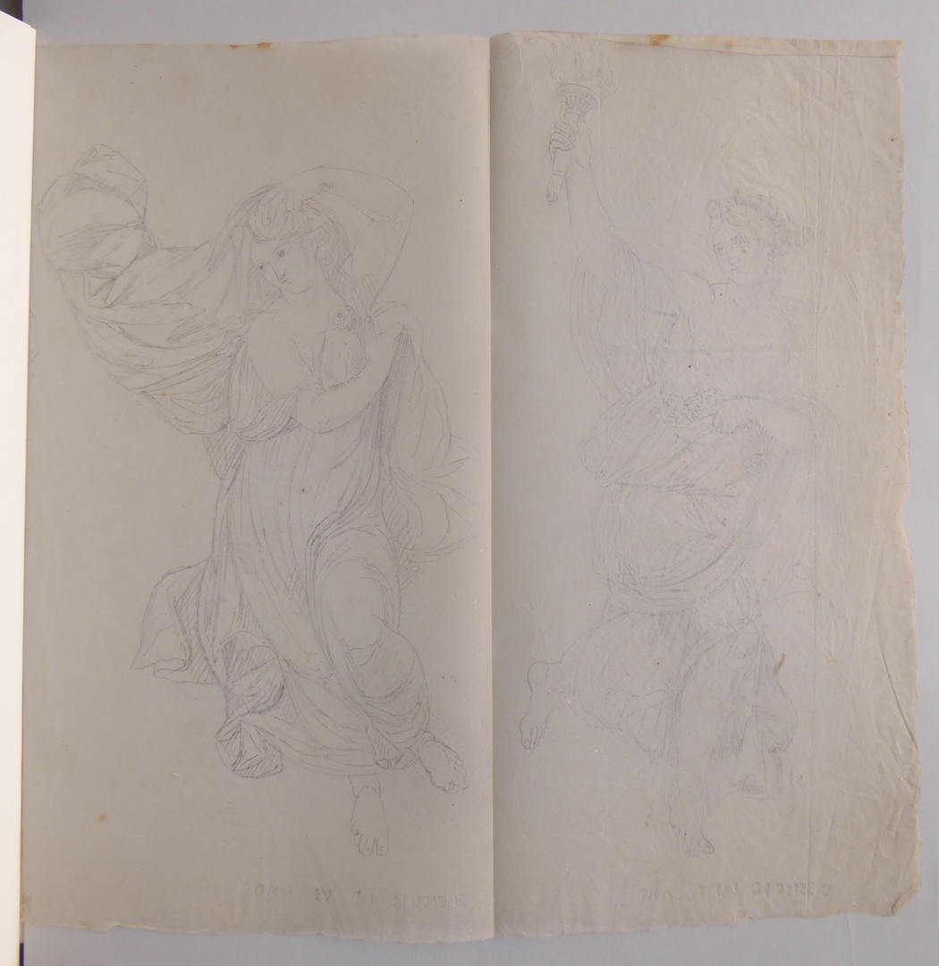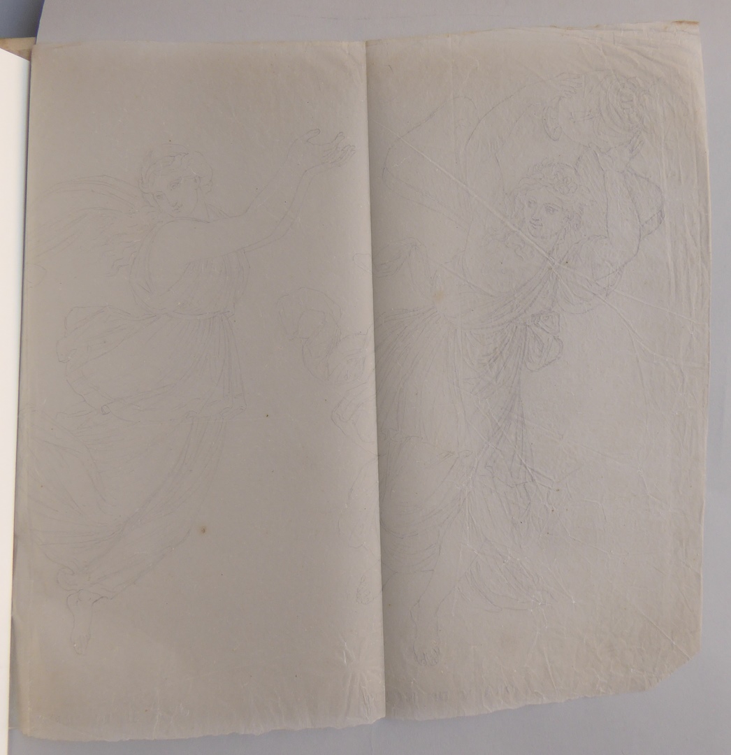 106 schetsen van Louis Royer en 61 schetsen van Jan Meeuwissen geplakt in groen album