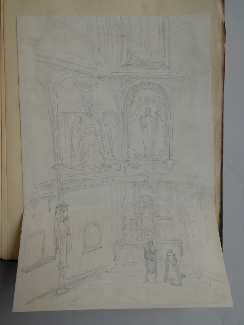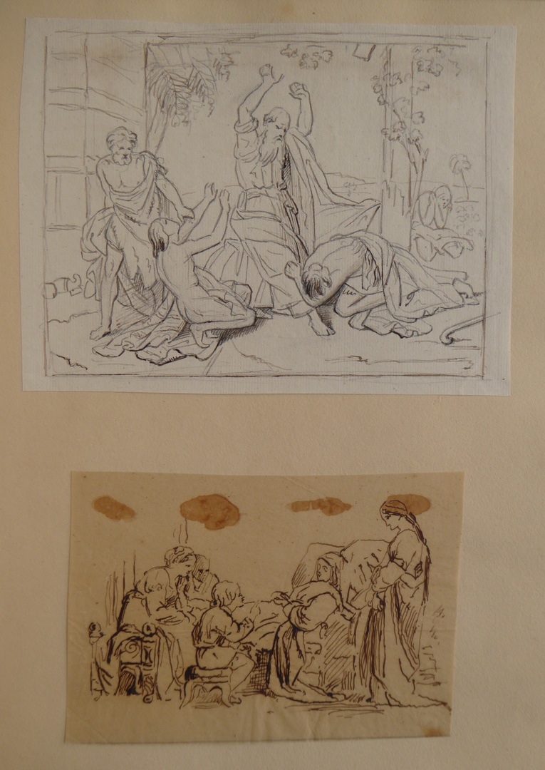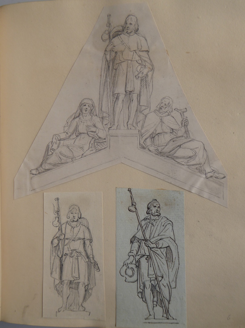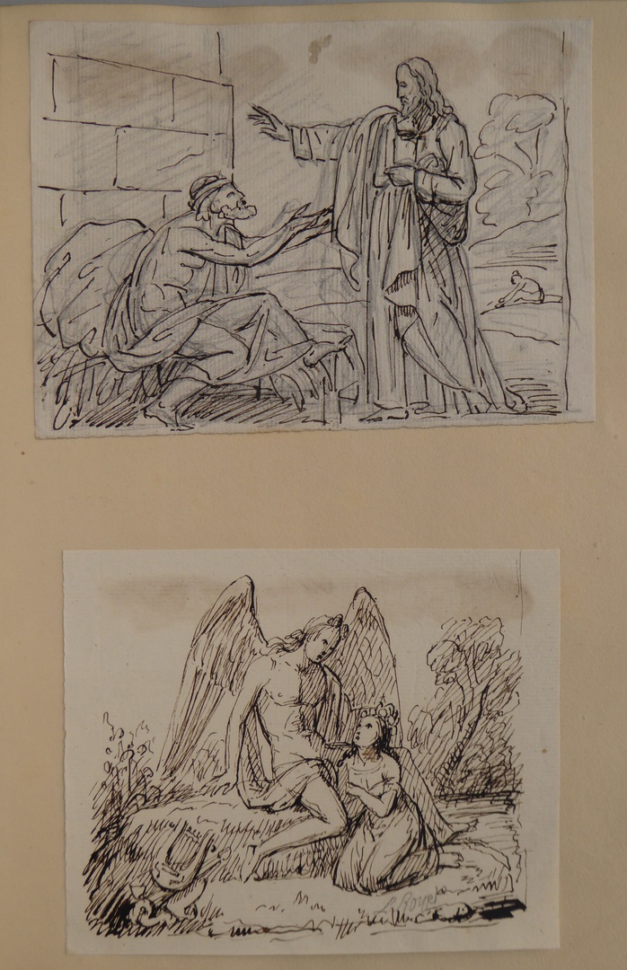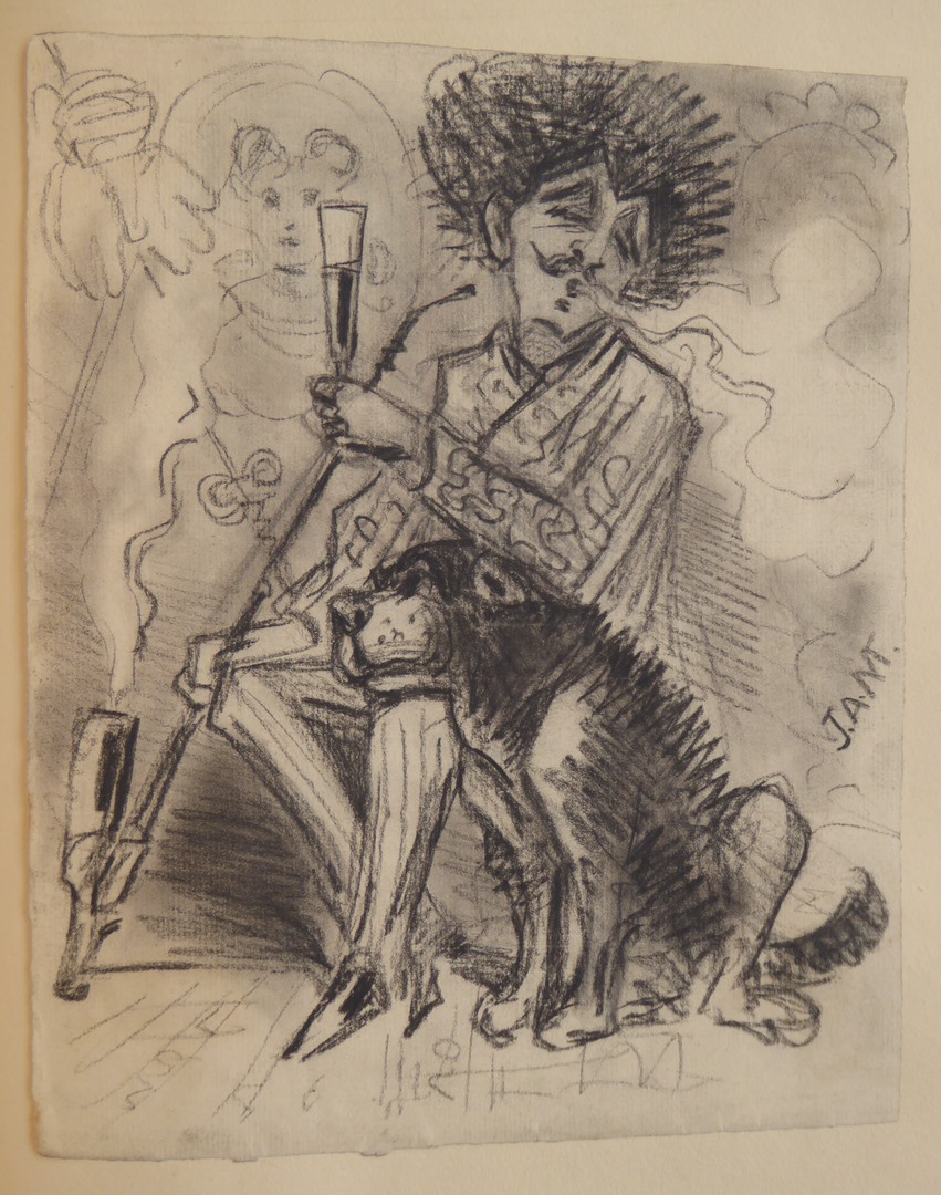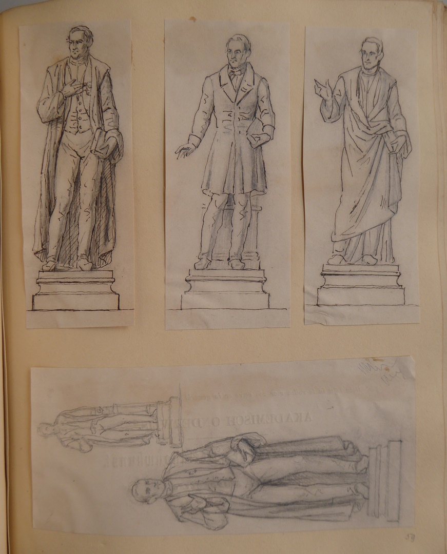 106 schetsen van Louis Royer en 61 schetsen van Jan Meeuwissen geplakt in groen album