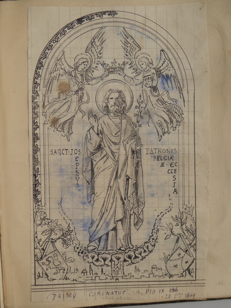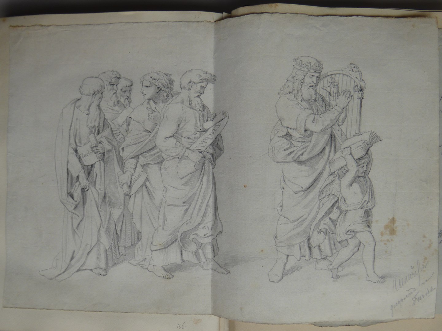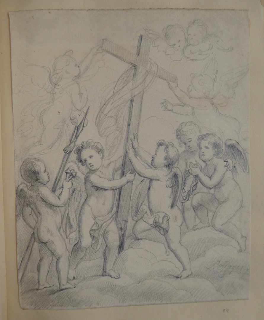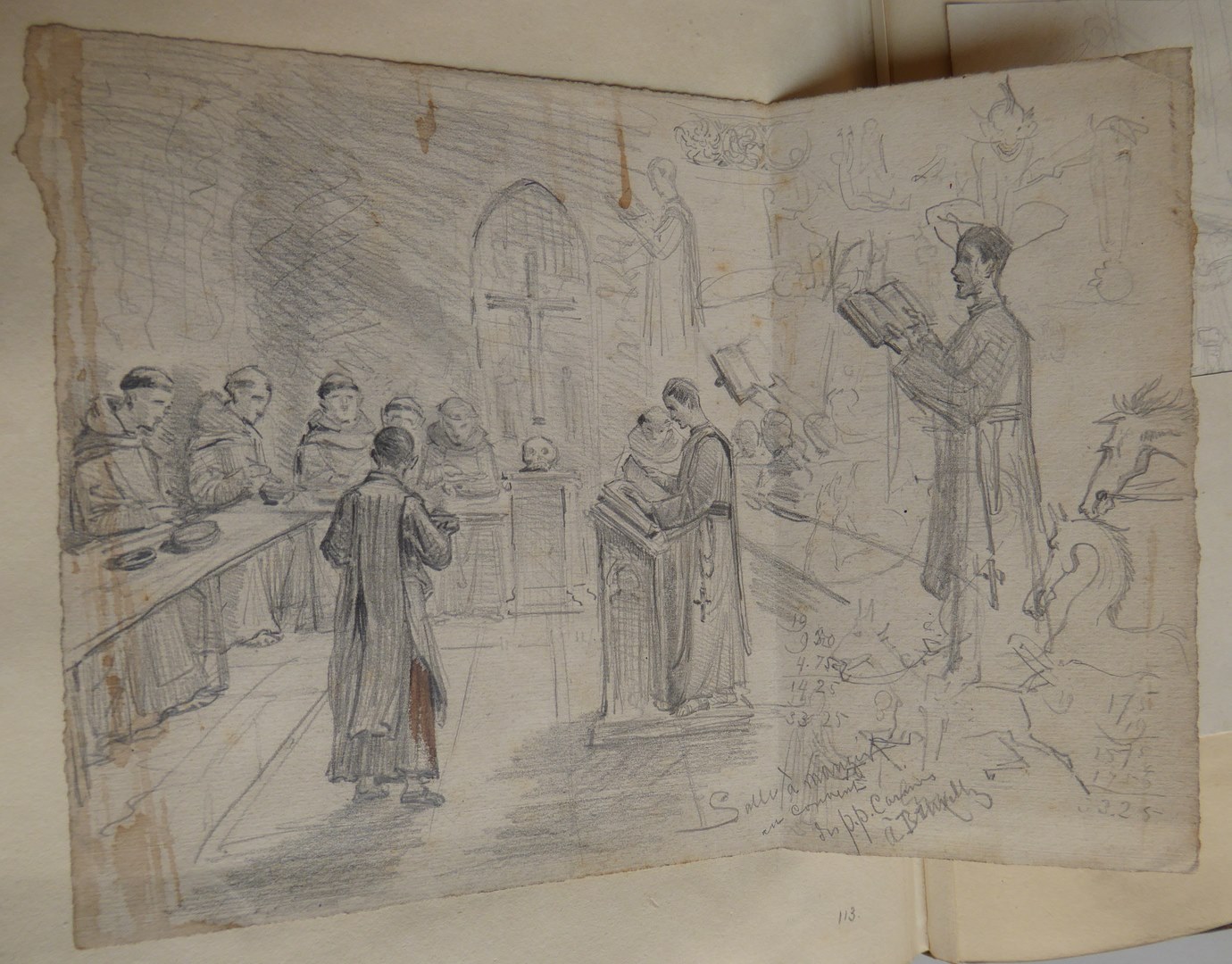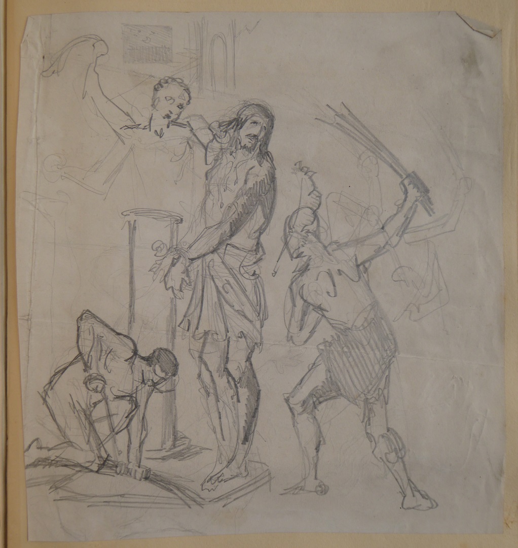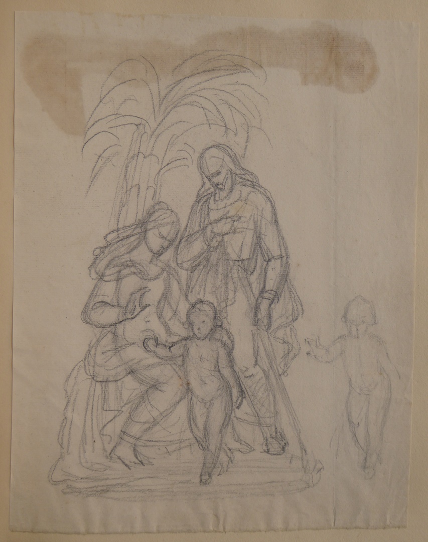 106 schetsen van Louis Royer en 61 schetsen van Jan Meeuwissen geplakt in groen album