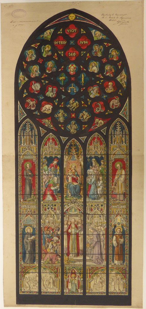 Ontwerp neogotisch glasraam ter ere van paus Leo XIII, voor oostelijk transept kerk te Feijenoord Rottterdam