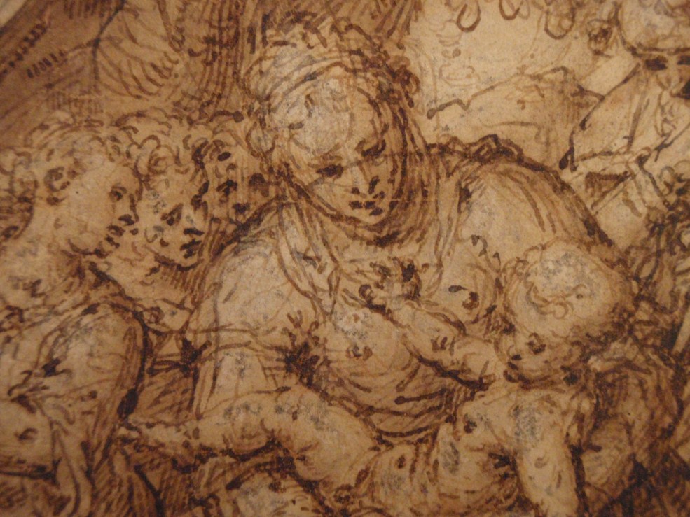 Rust op de vlucht naar Egypte, kz. schetsblad met kinderfiguren