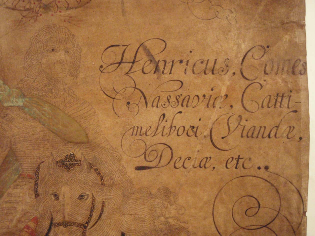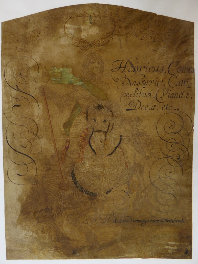 Kalligrafie met ruiterportret Hendrik Casimir I