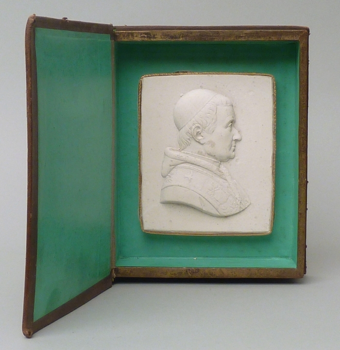 Doosje in vorm van boekband met reliëf van paus Gregorius XVI (1831-1846)