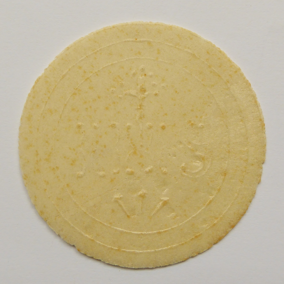 Hostie met gekruisigde Christus, IHS en drie nagels