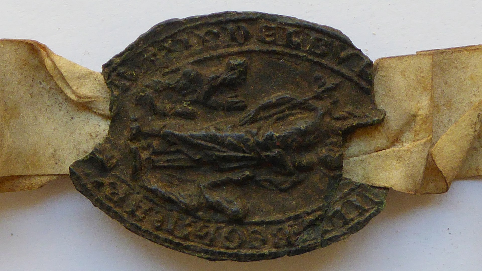 Groen zegel van Begijnhof met Maria met kind en twee knielende begijnen(?)