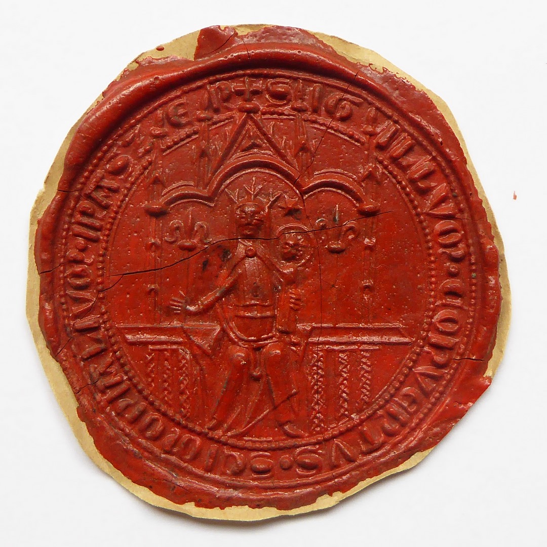 Afdruk van zegelstempel (1416) met Maria met kind op troon met "... conventus scimonialium in Aszen"