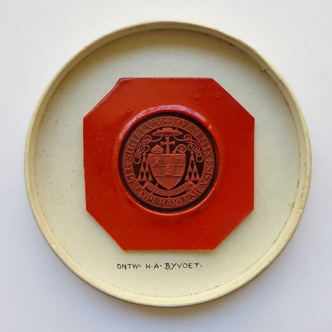 Zegel in doosje, met wapen van bisschop Joannes Petrus Huibers (1936-1960) van Haarlem