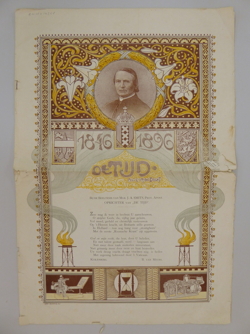 Jubileumnummer (1846-1896) voor oprichter katholiek dagblad "De Tijd", met portret van Mgr. J.A. Smits