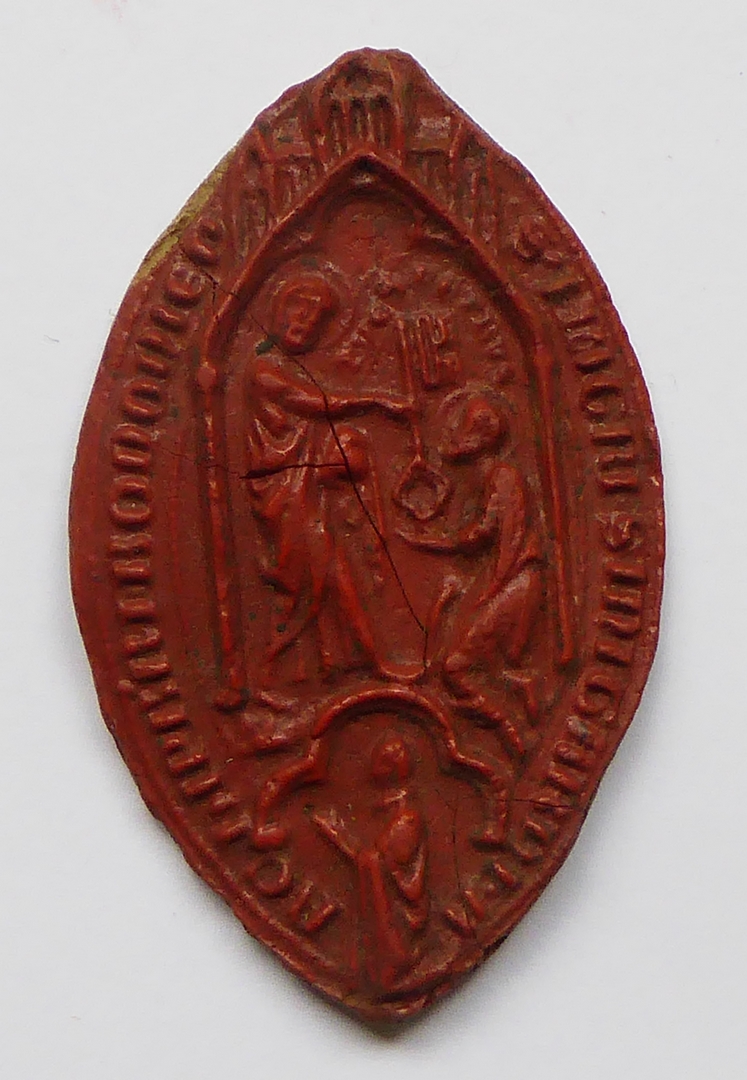 Afdruk van zegelstempel (14de eeuw) van Petrus Sinicardus, Bologna, met Christus en H. Petrus