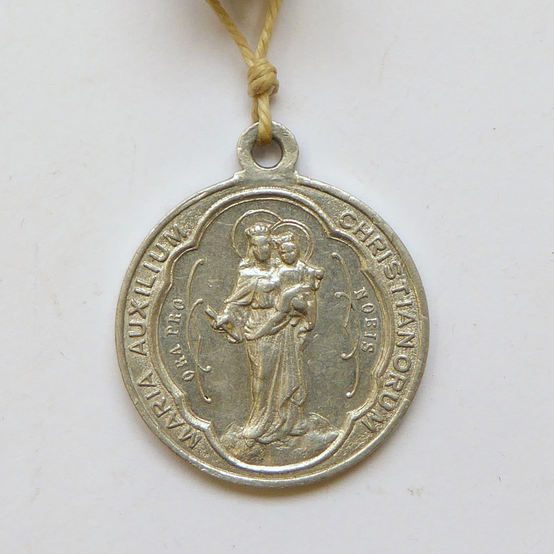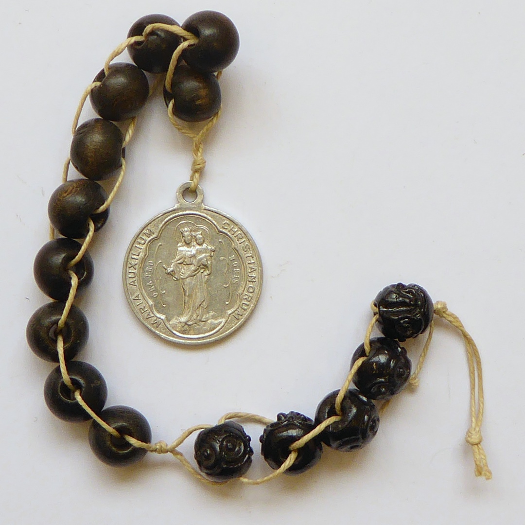 Rozenkranstientje, tien plus vijf kralen, met penning Maria Hulp der Christenen, kz. Pius XI