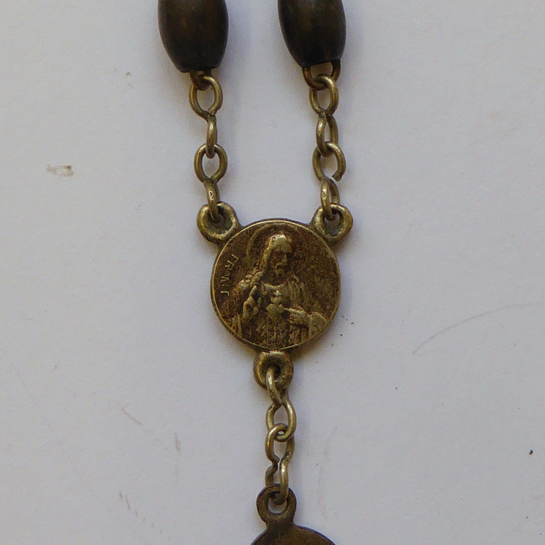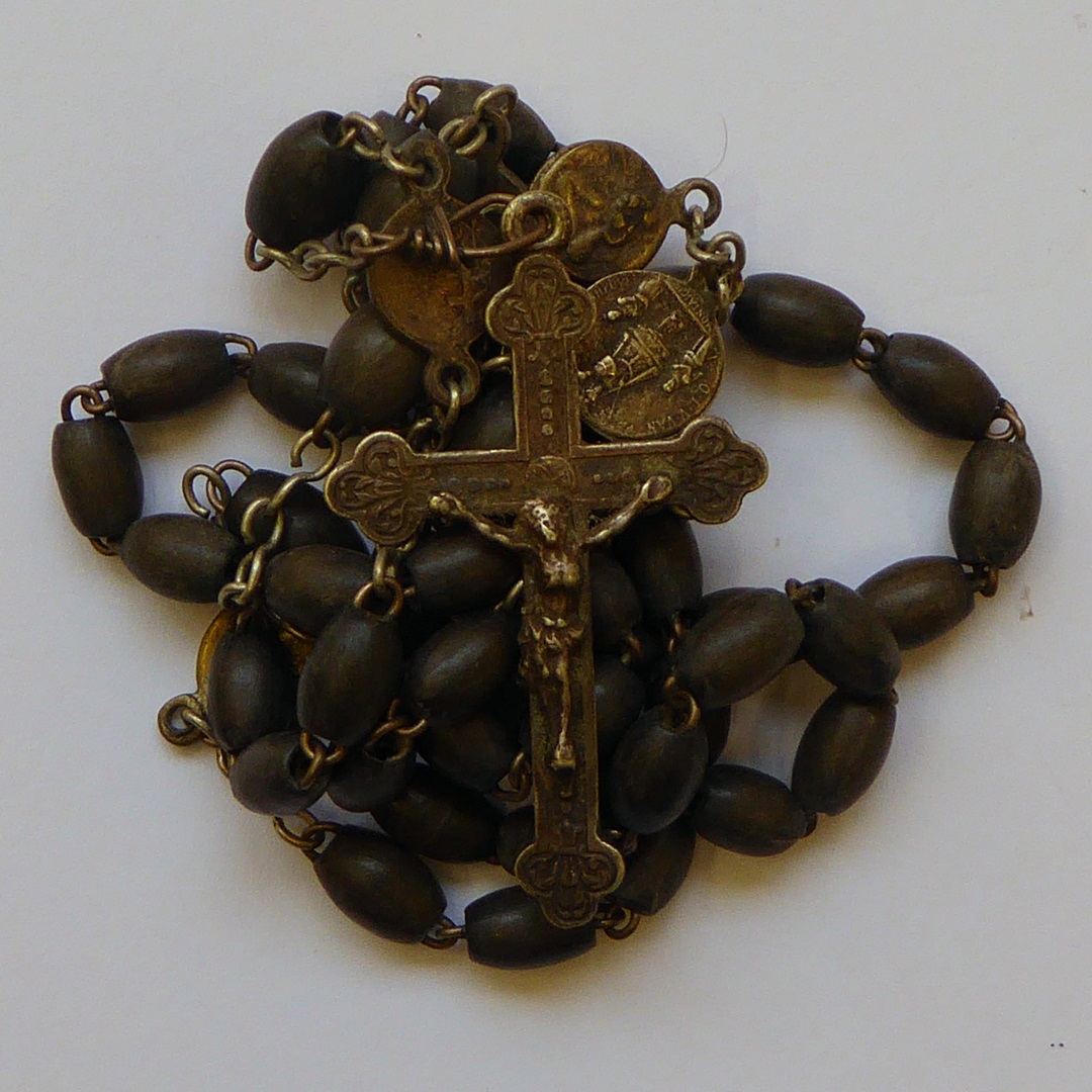 Rozenkrans o.a. met vier maal tien kralen, met plaatje O.L.V. van Scherpenheuvel en kruisje