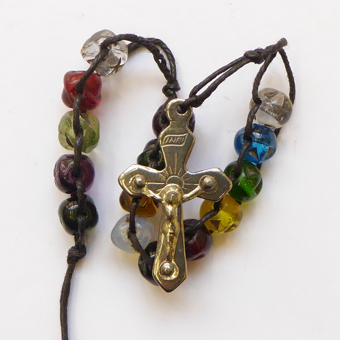 Rozenkranstientje met kralen in diverse kleuren en kruisje