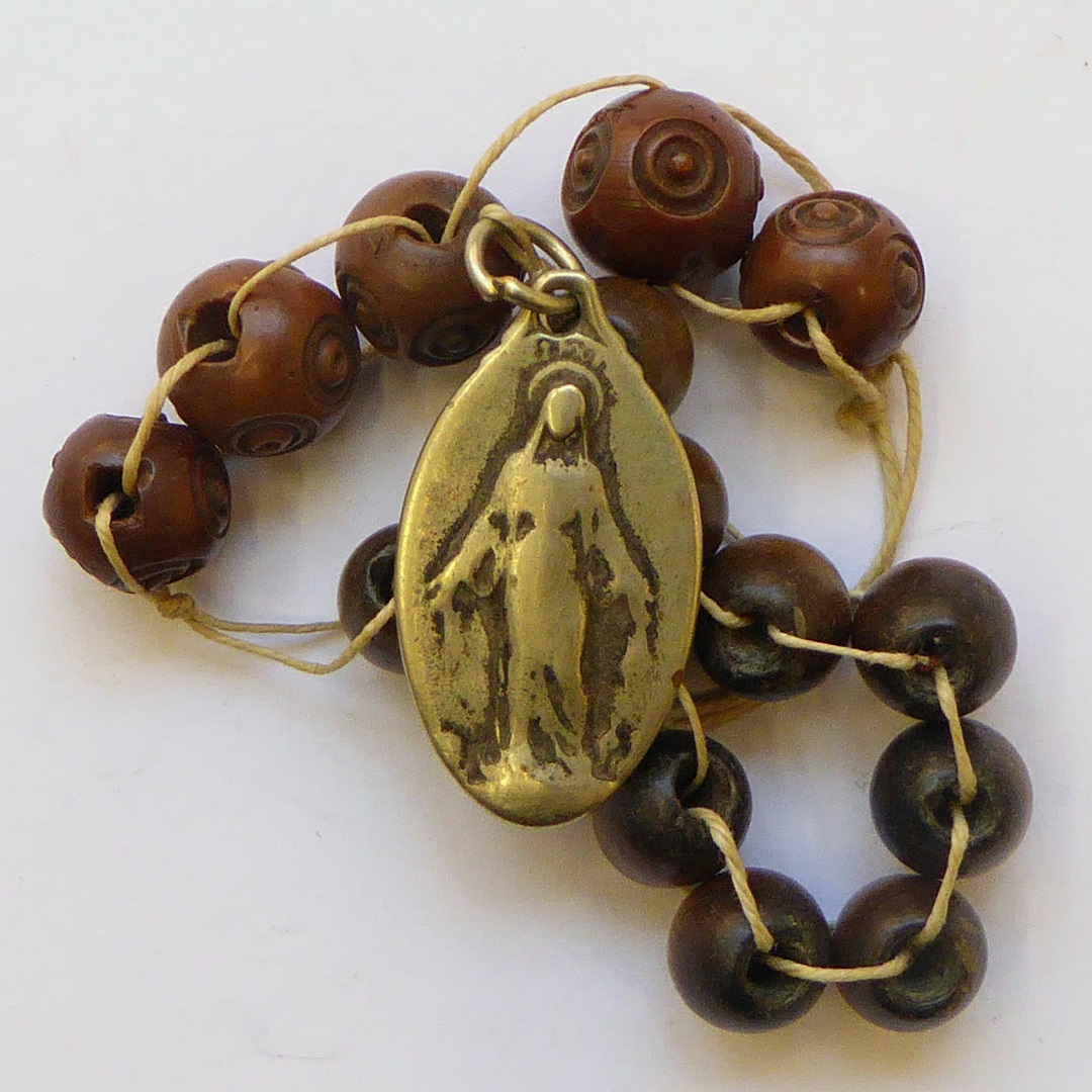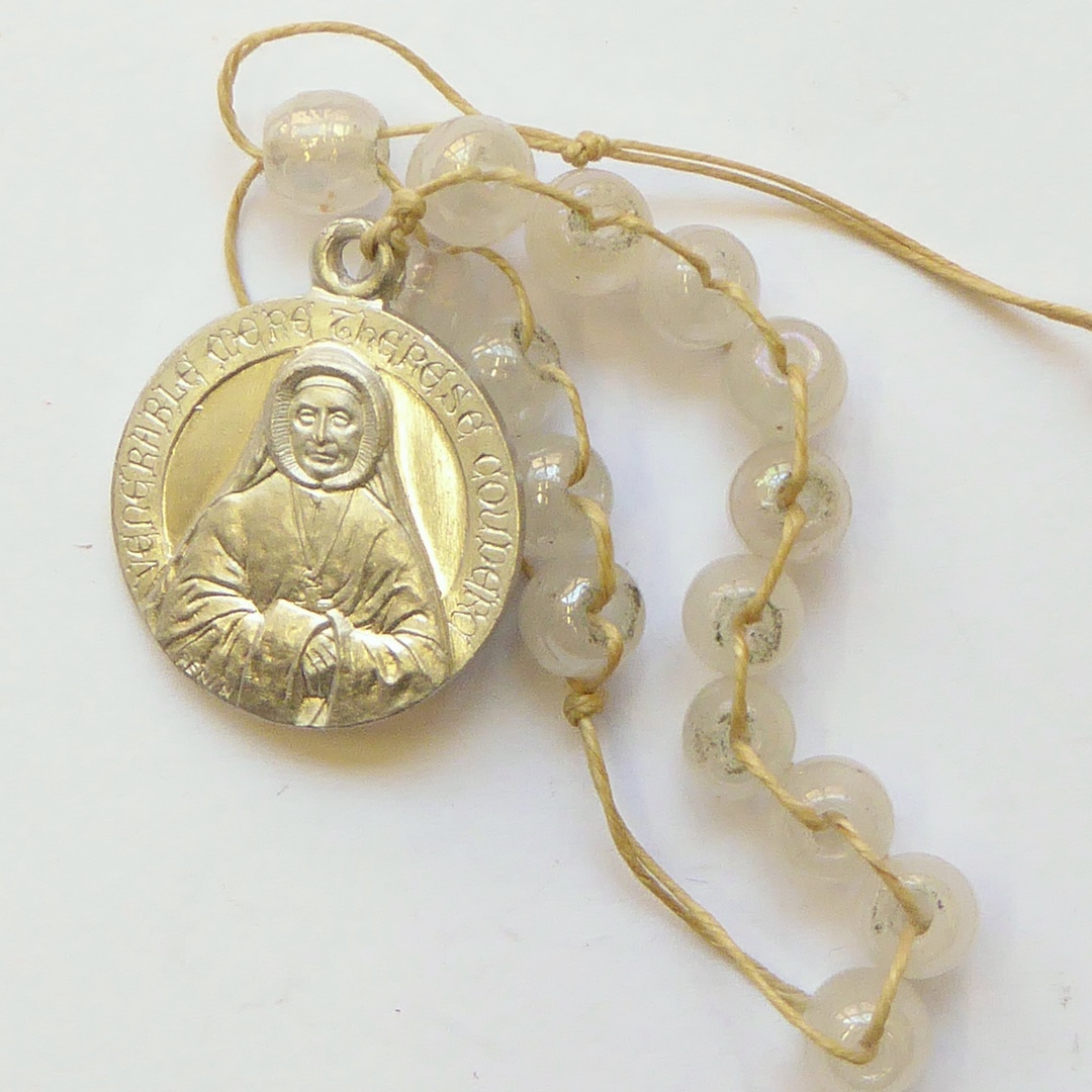 Rozenkranstientje met penning Eerbiedwaardige Theresia Couderc, kz. pinkstervoorstelling