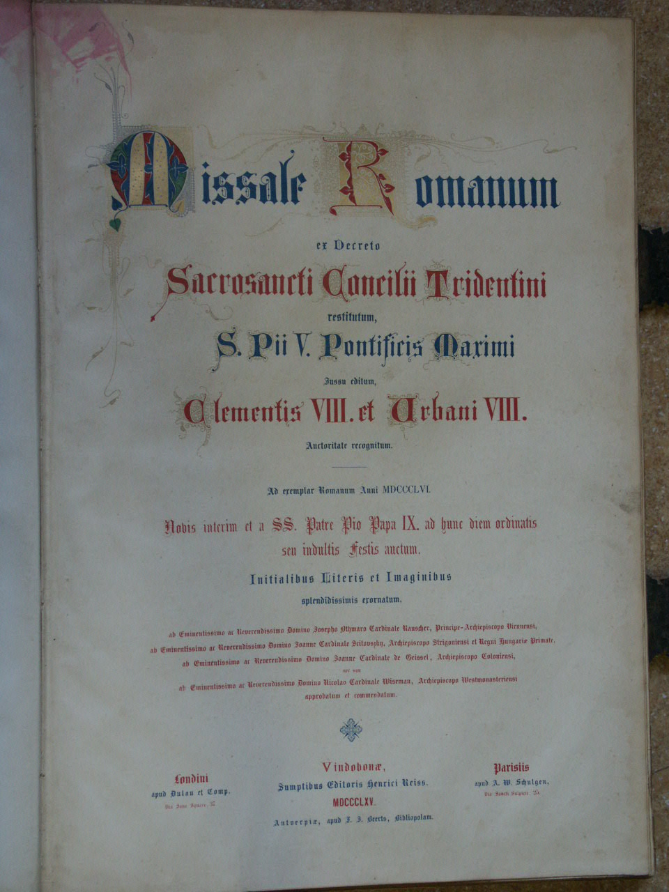 Missale Romanum ex decreto sacrosancti concilii Tridentini restitutum Pii V pontificis Maximi iussu editum, Clementis VIII. et Urbani VIII. Auctoritate recognitum. Ad exemplar Romanum anni MDCCCLVI.