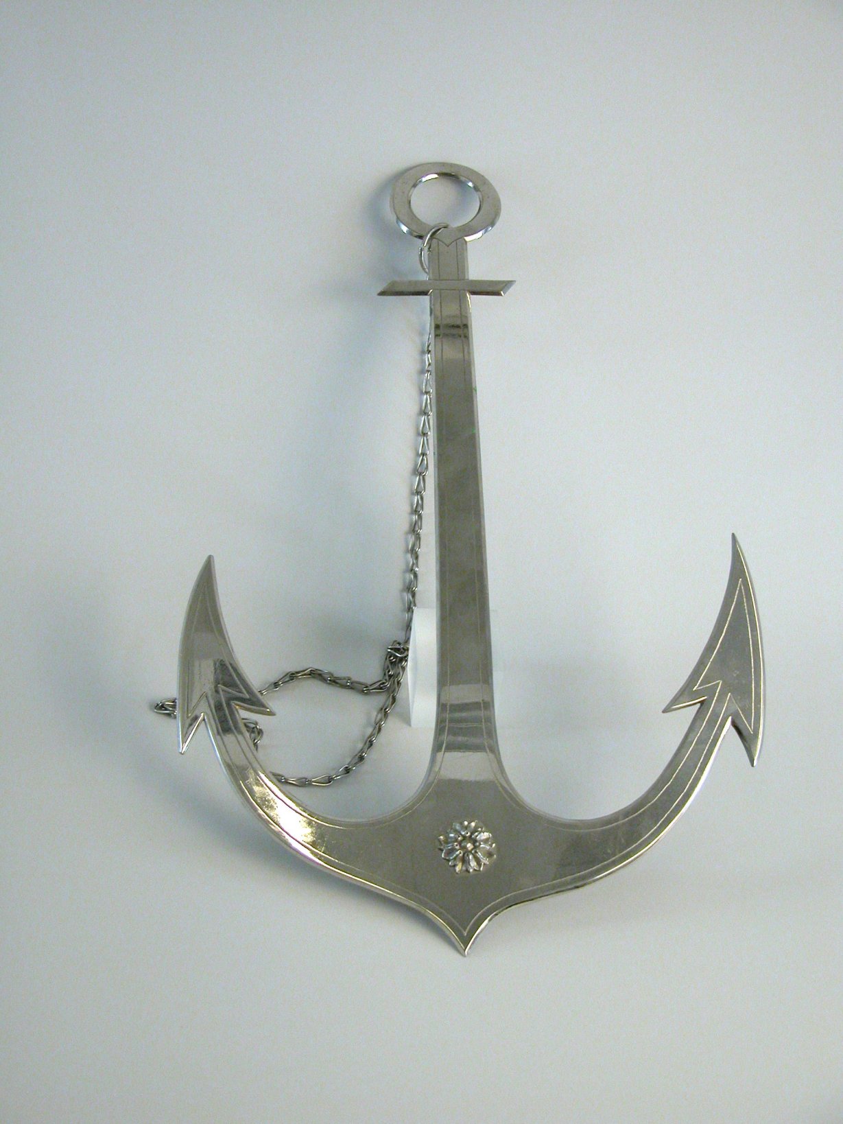 Processieattribuut: metalen anker waaraan ketting, met handvat aan achterzijde