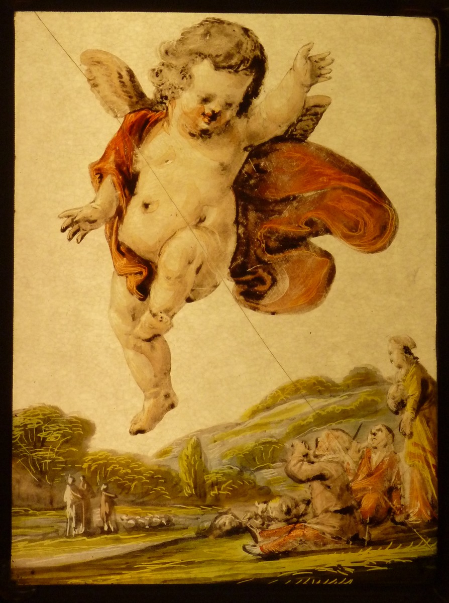 Zwevend engeltje boven een landschap