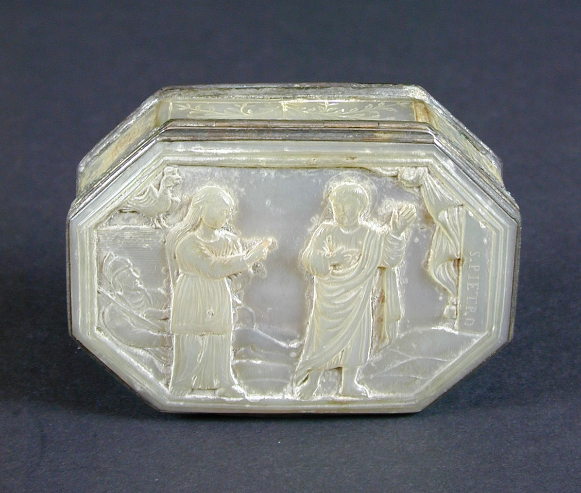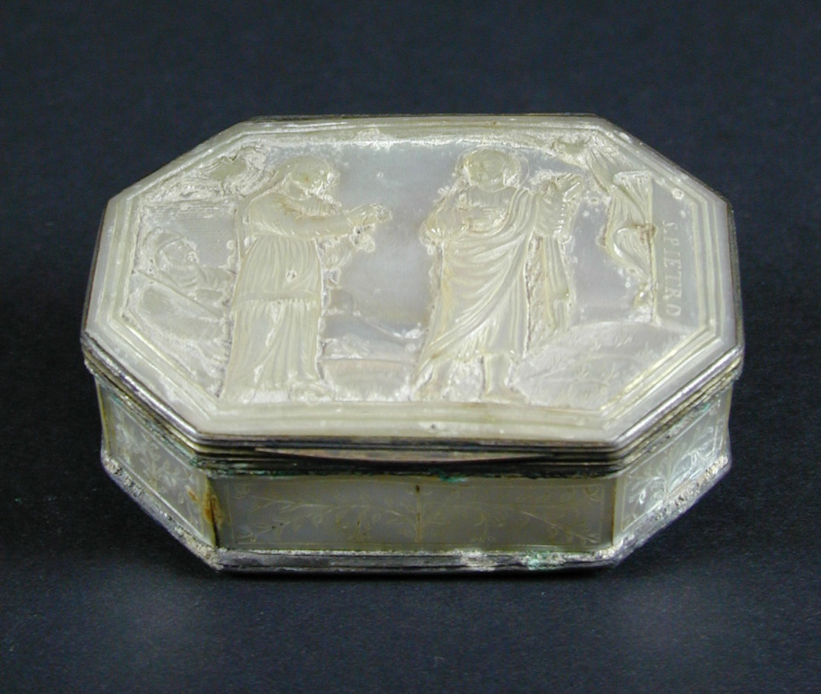 Doos van parelmoer met de verloochening van Christus door Petrus