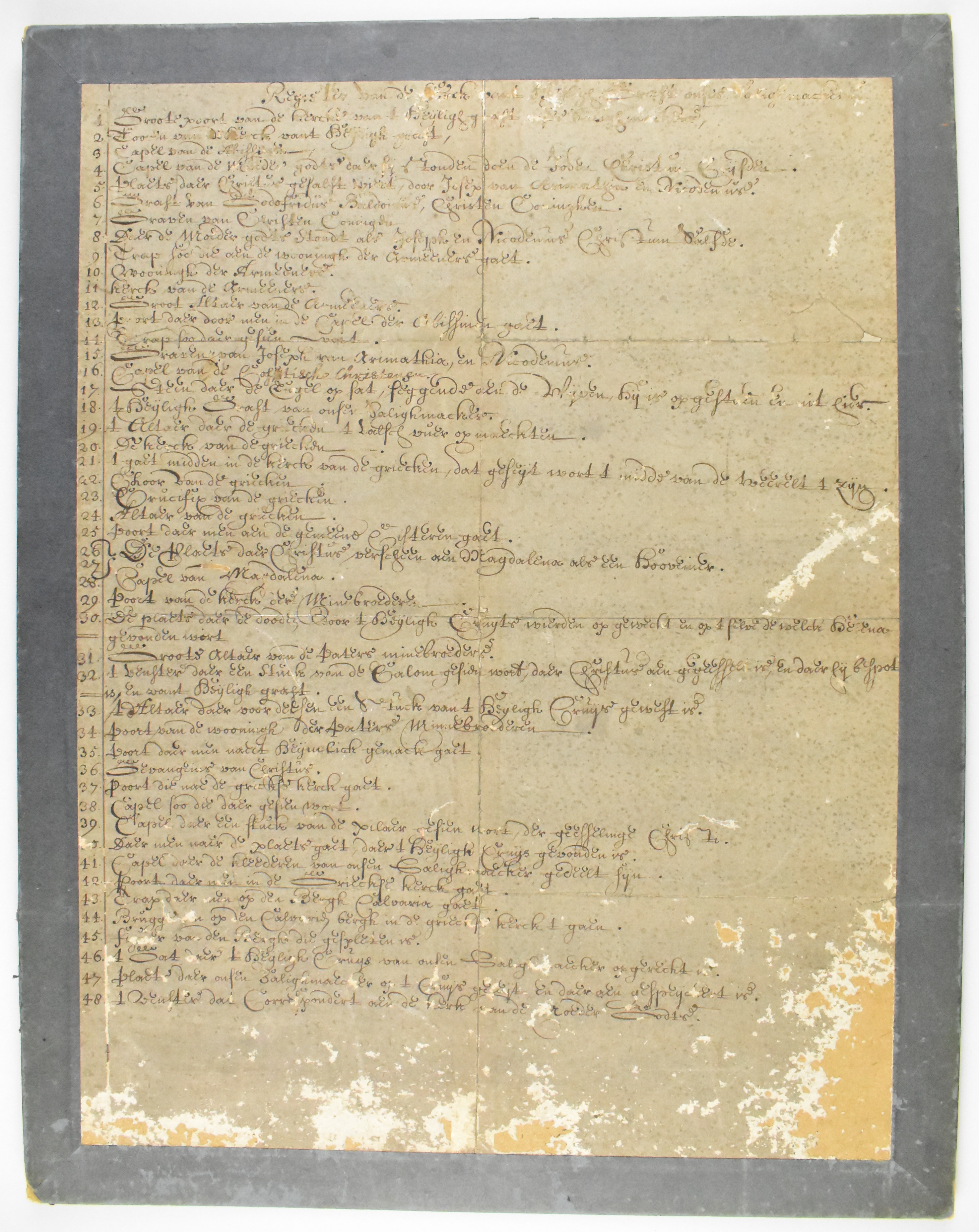 Legenda bij maquette van de kerk van het Heilig Graf te Jeruzalem