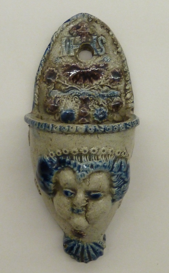 Wijwaterbakje met IHS met vrouwenkop op bakje