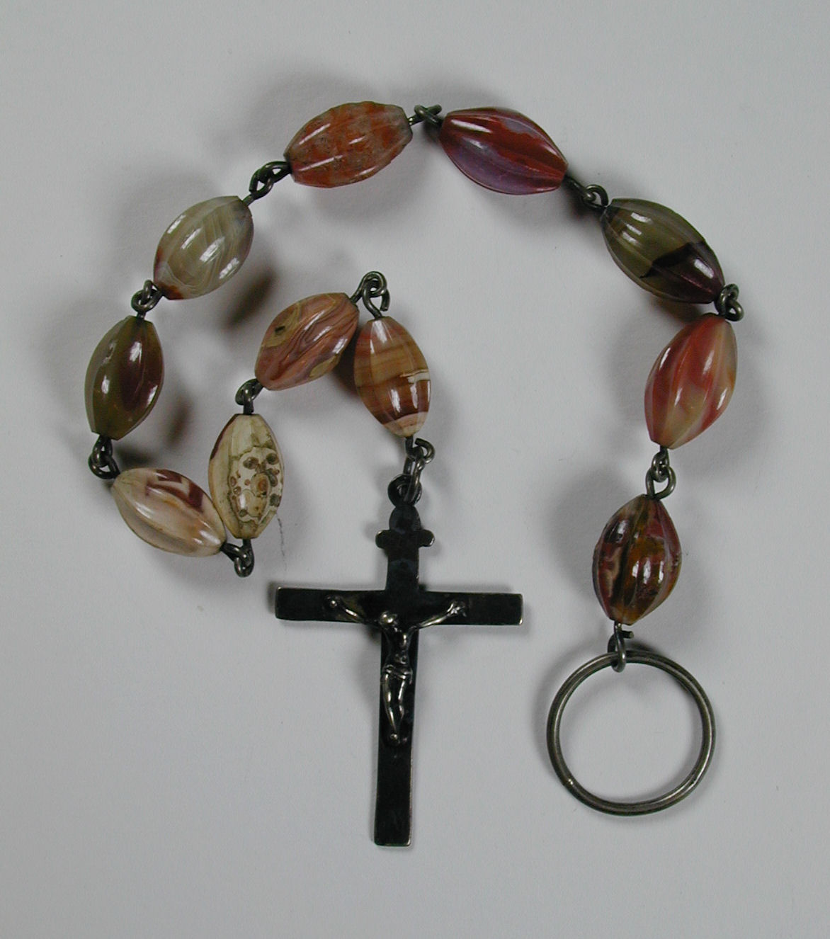 Rozenkrans (tientje) met marmeren kralen met zilveren schakels, ring en kruis
