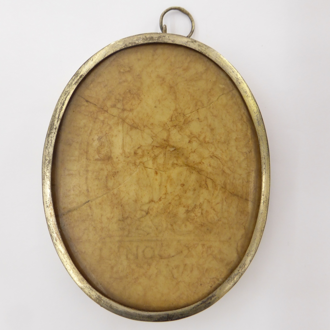 Agnus Dei met wapen paus Innocentius XI achter glas, gevat in zilveren lijst