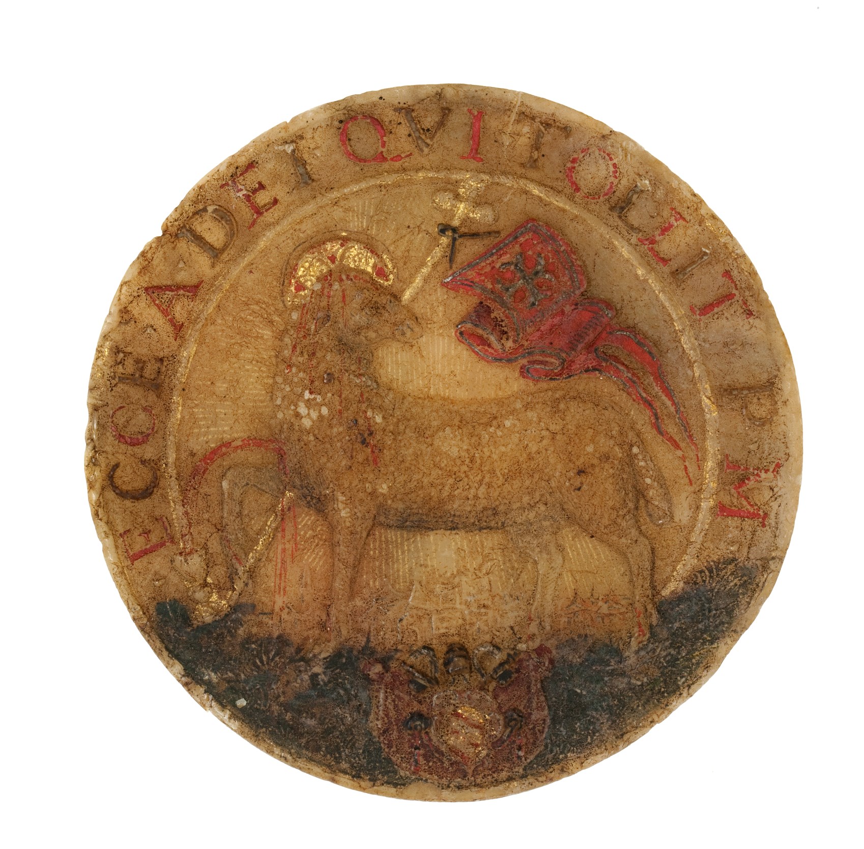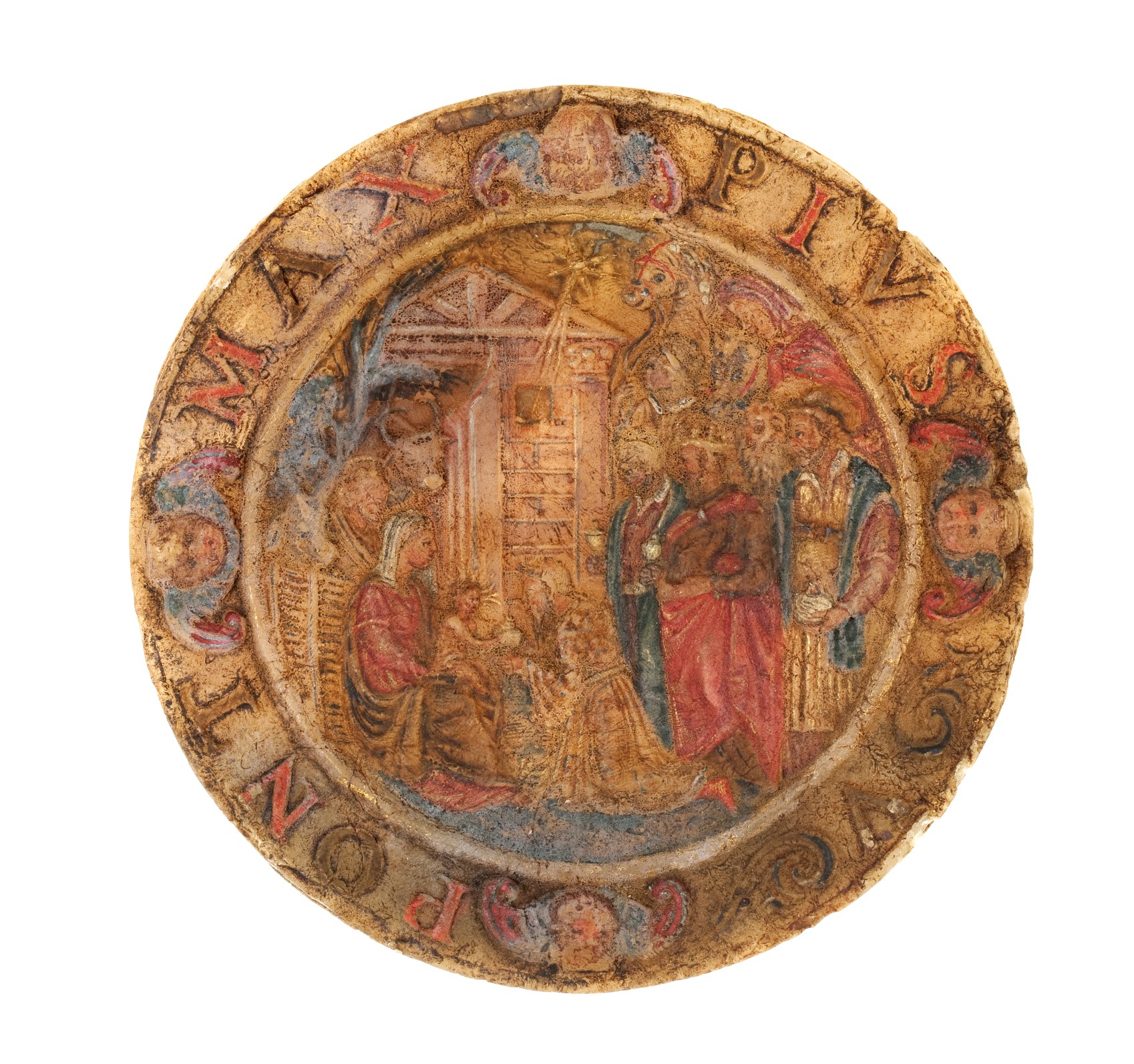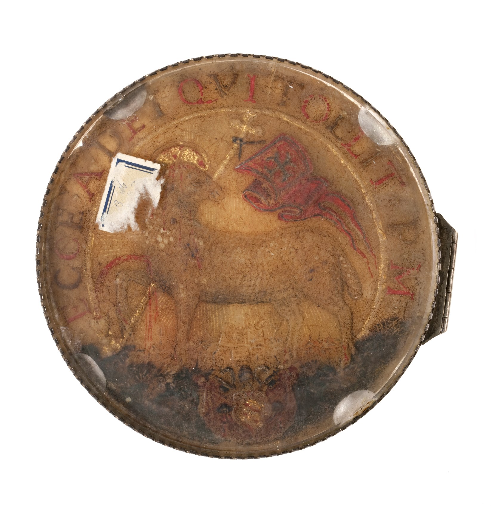 Agnus Dei met aanbidding der koningen en wapen Pius V met goudverf, in zilveren houder