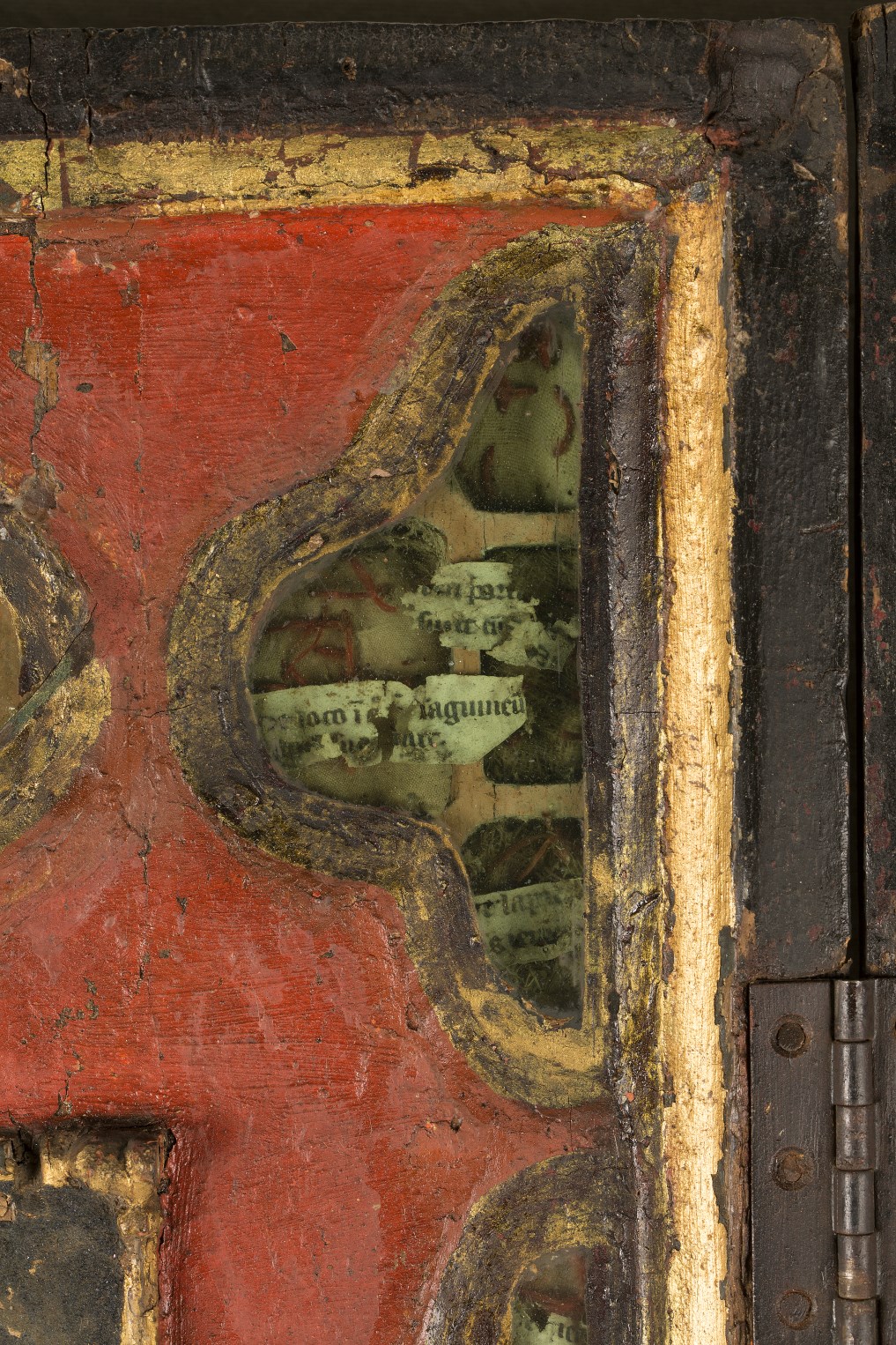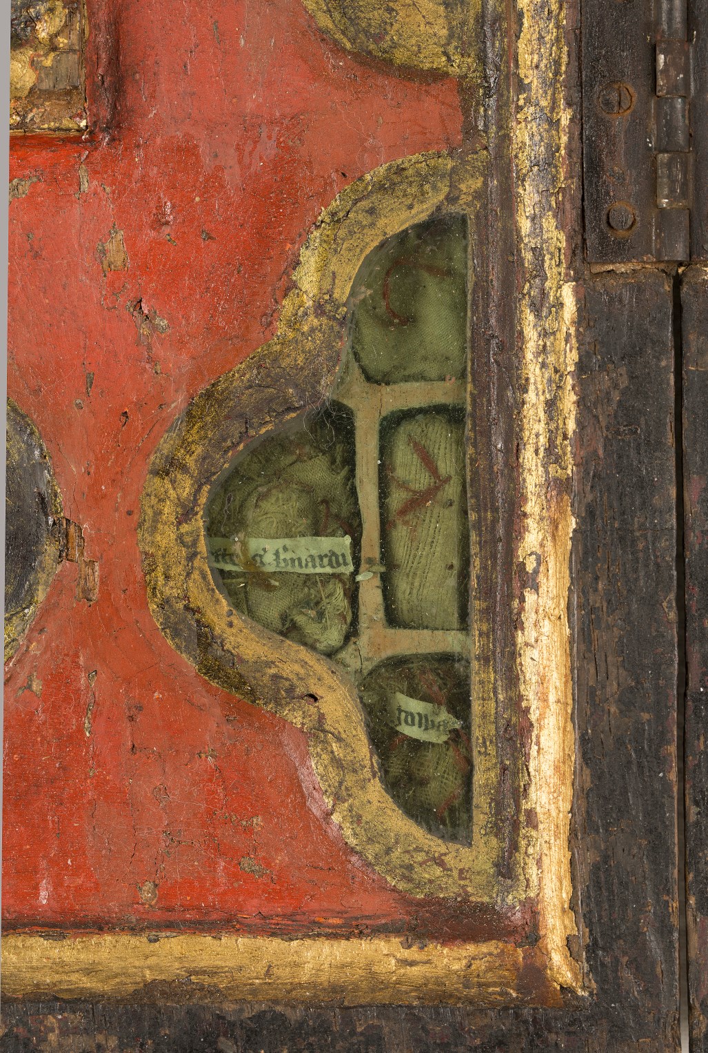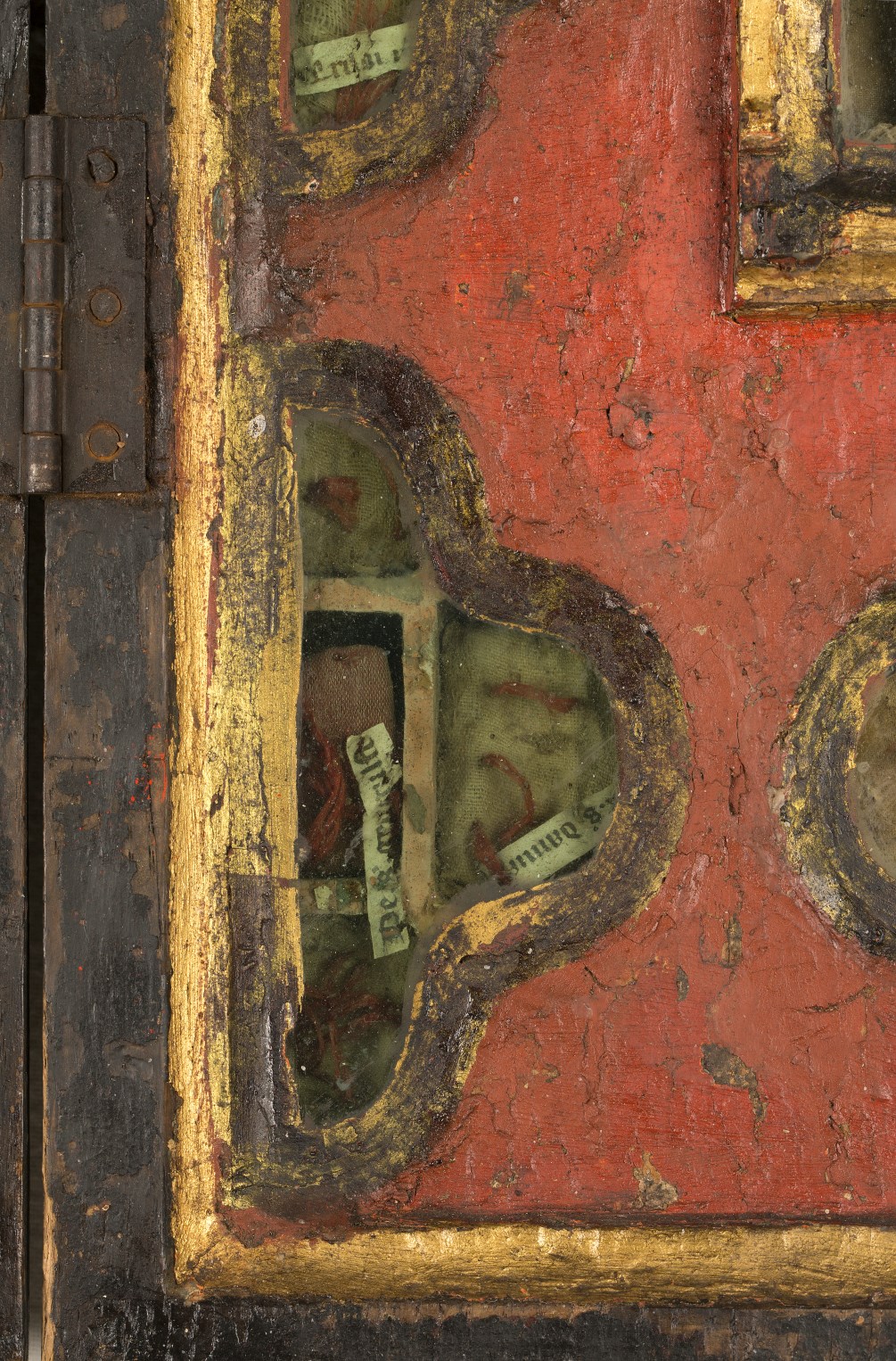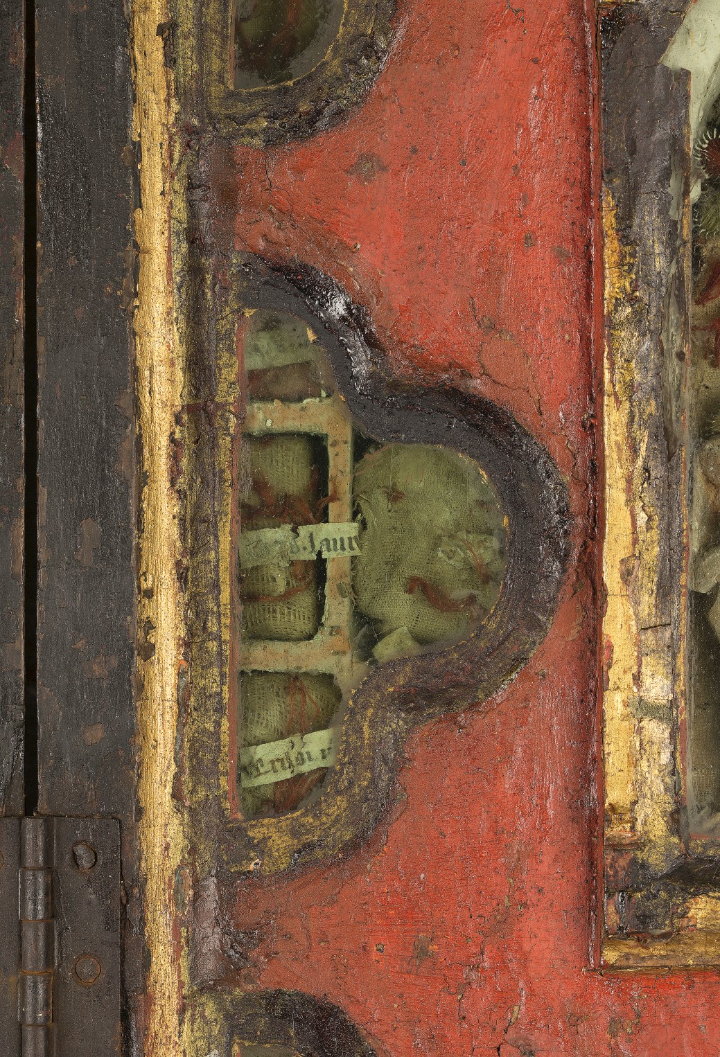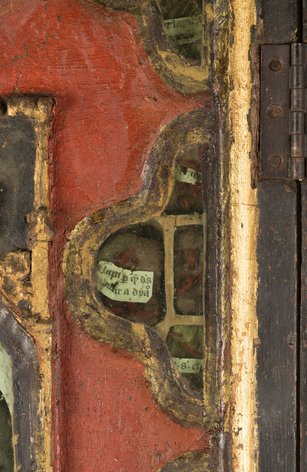 Reliekkast in de vorm van een drieluik met beeldjes Maria en Johannes