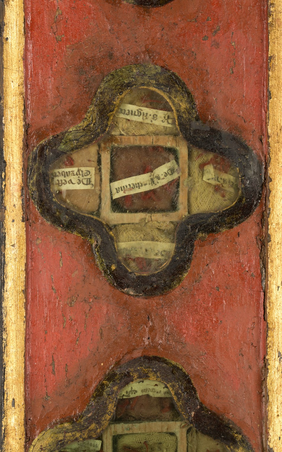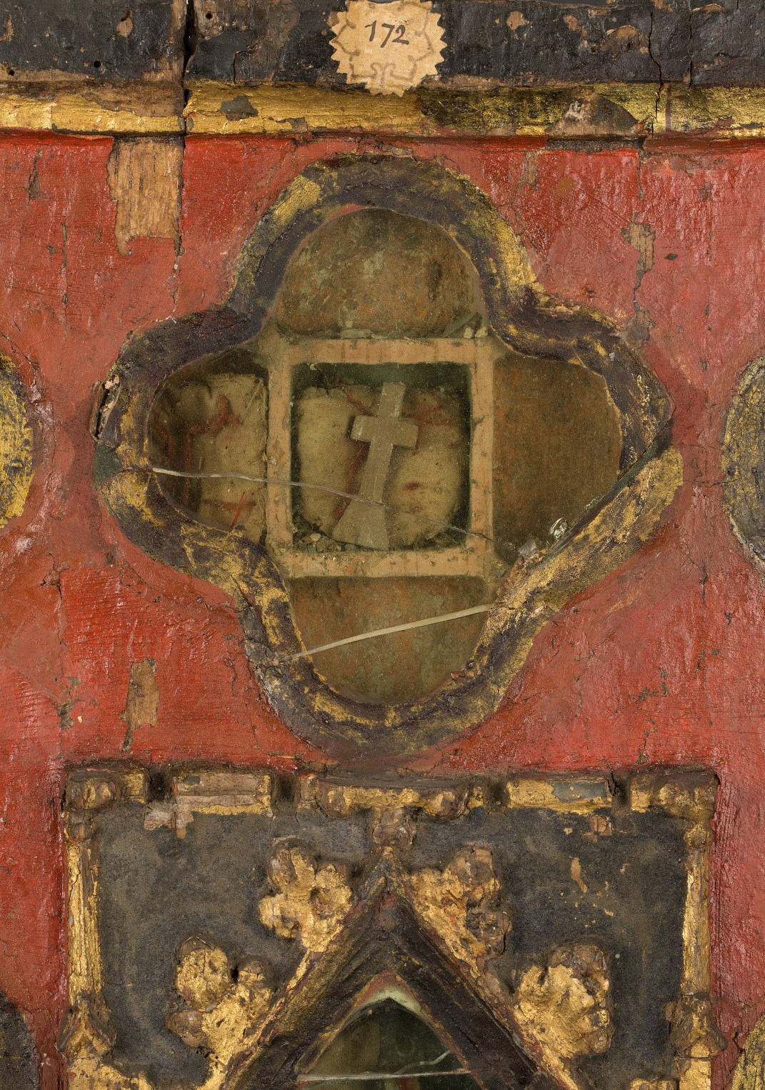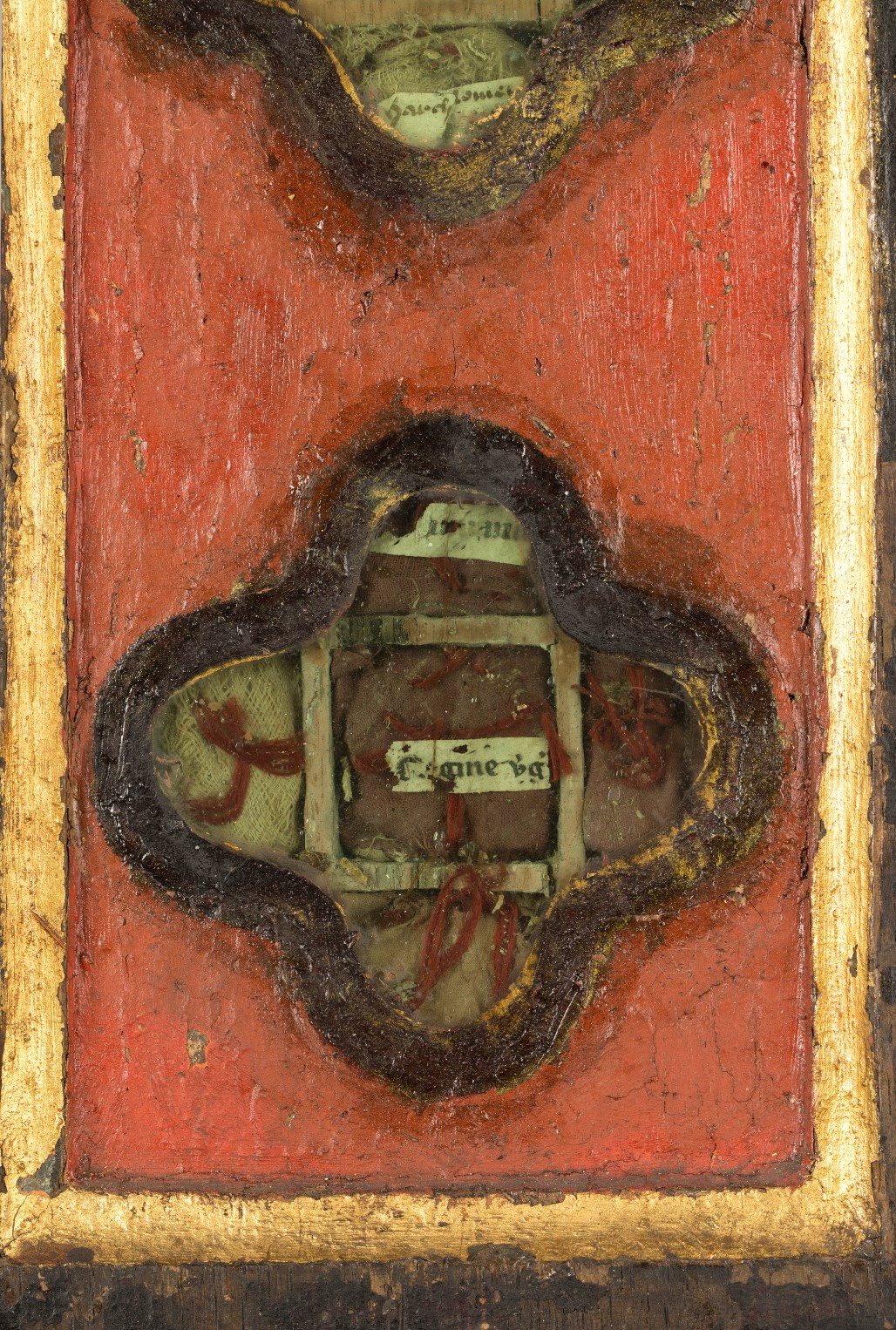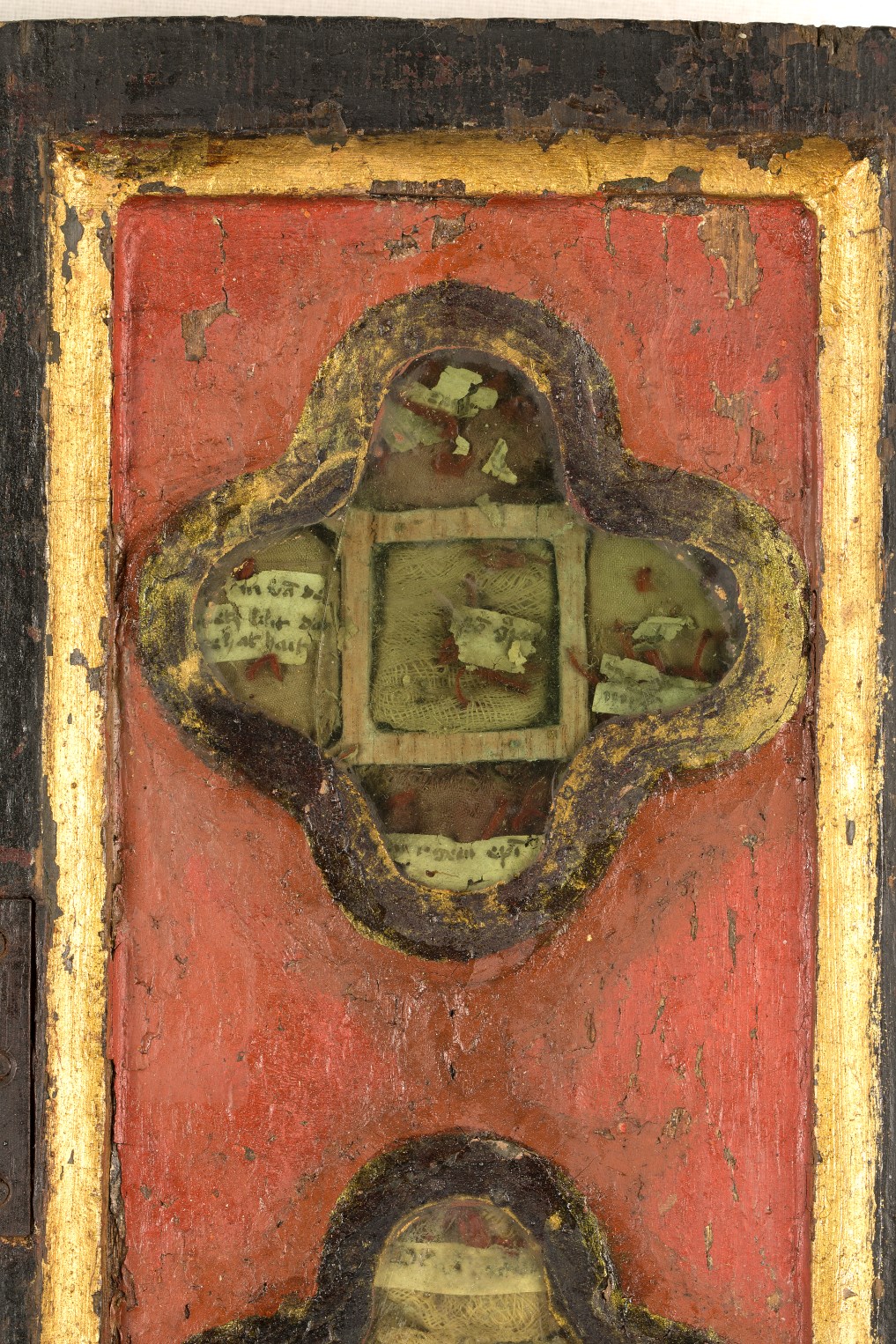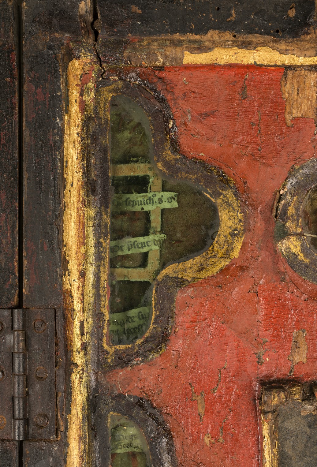 Reliekkast in de vorm van een drieluik met beeldjes Maria en Johannes
