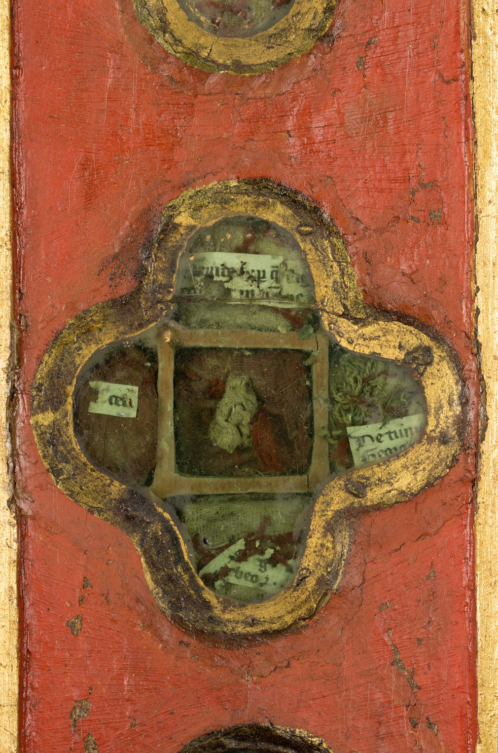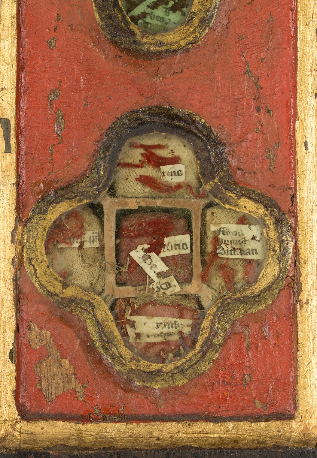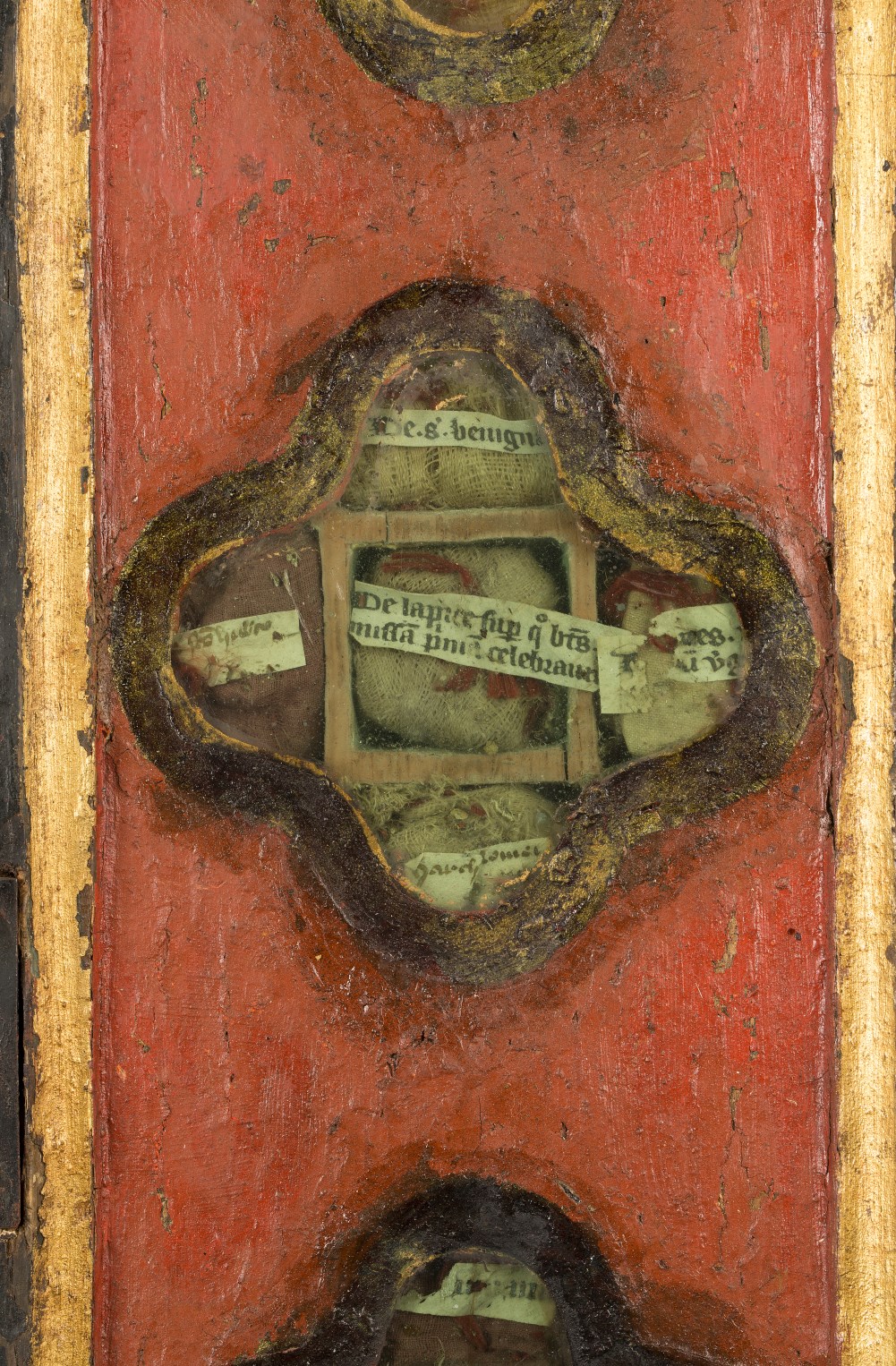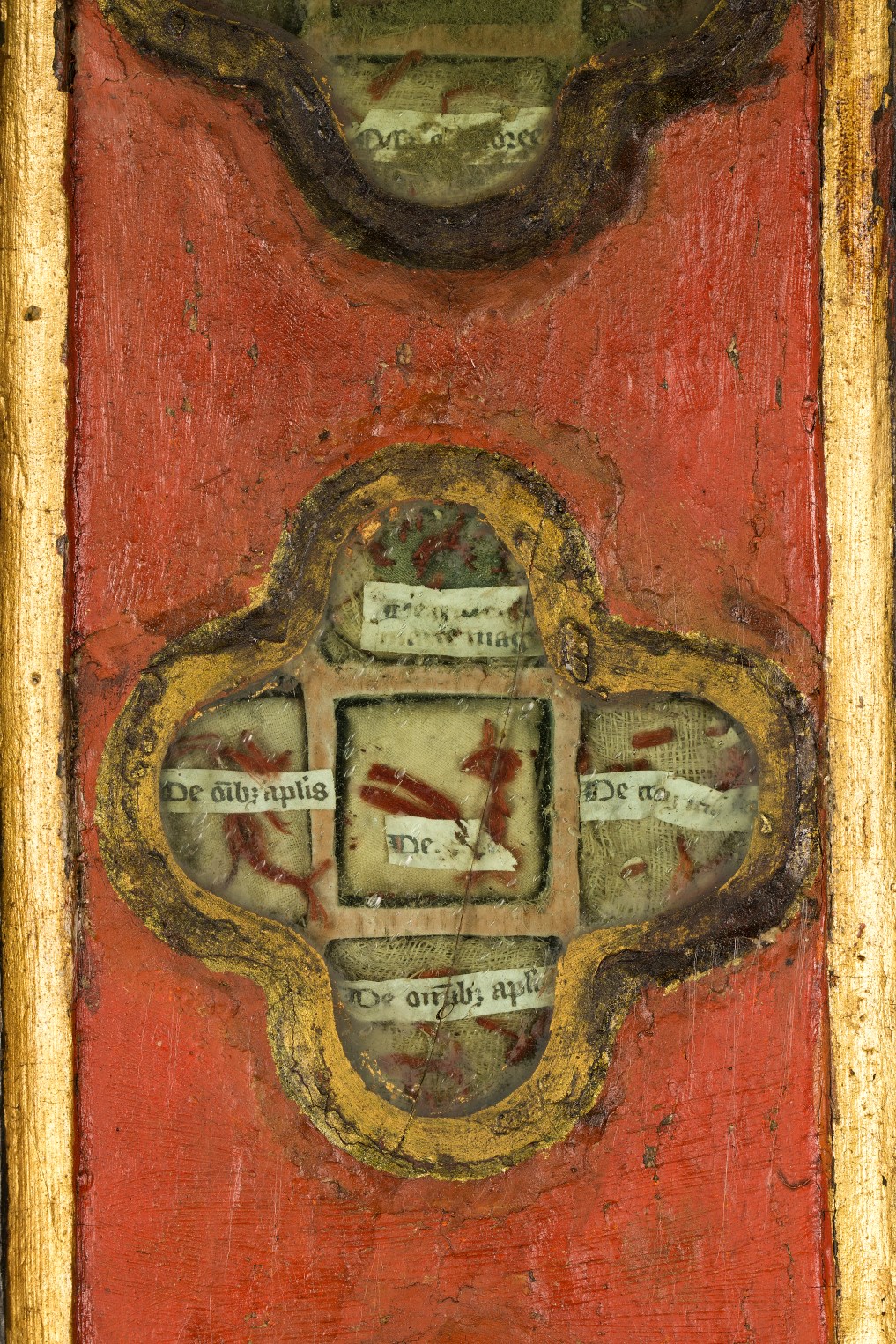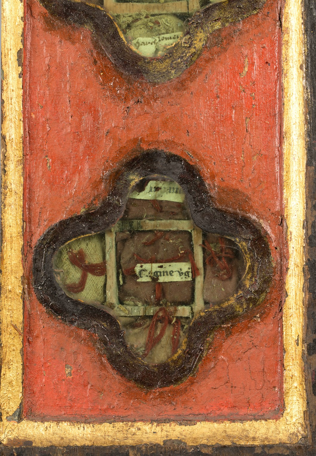 Reliekkast in de vorm van een drieluik met beeldjes Maria en Johannes