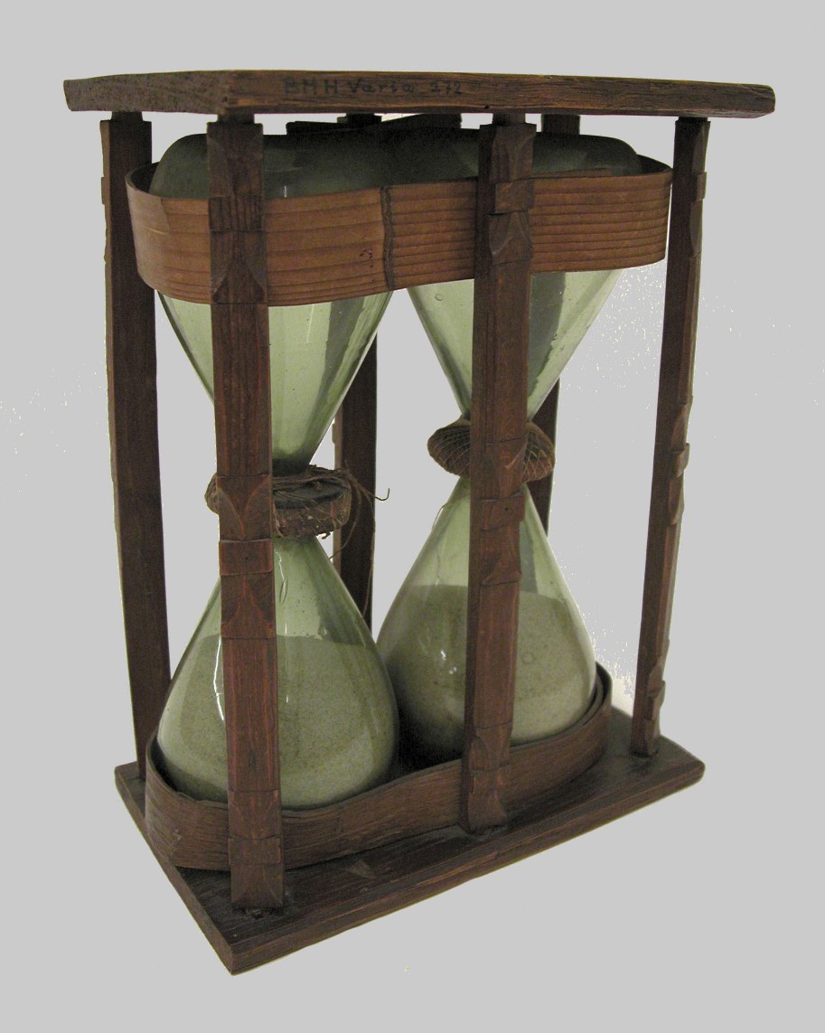 Dubbele zandloper, een voor 15 en een voor 30 minuten