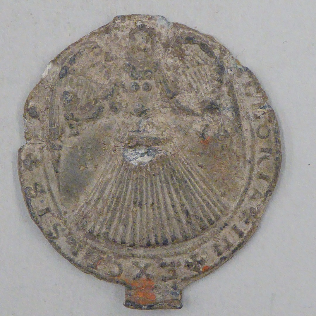 Penning met vliegende engel, met "Gloria in excelcis Deo", kz. blanco