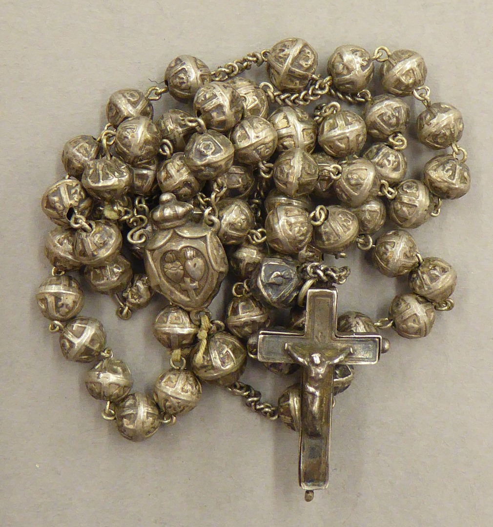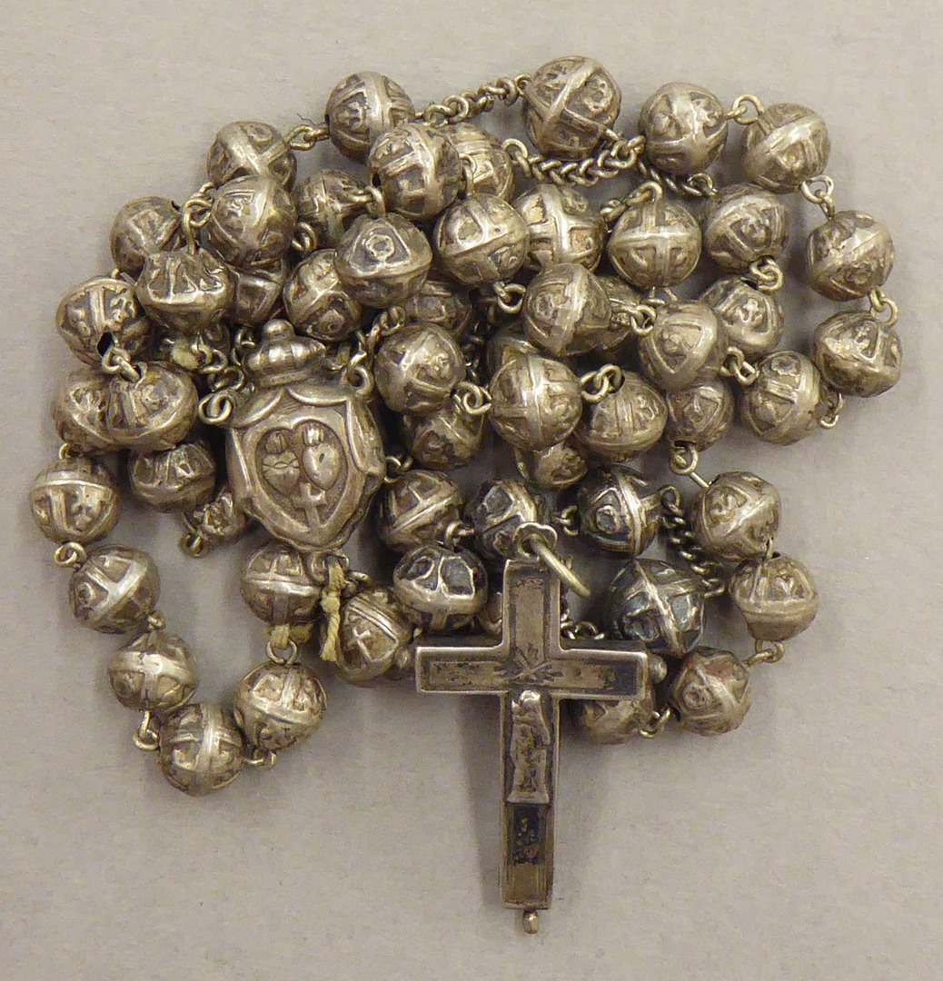 Rozenkrans met zilveren kruis en zilveren medaille uit 1830