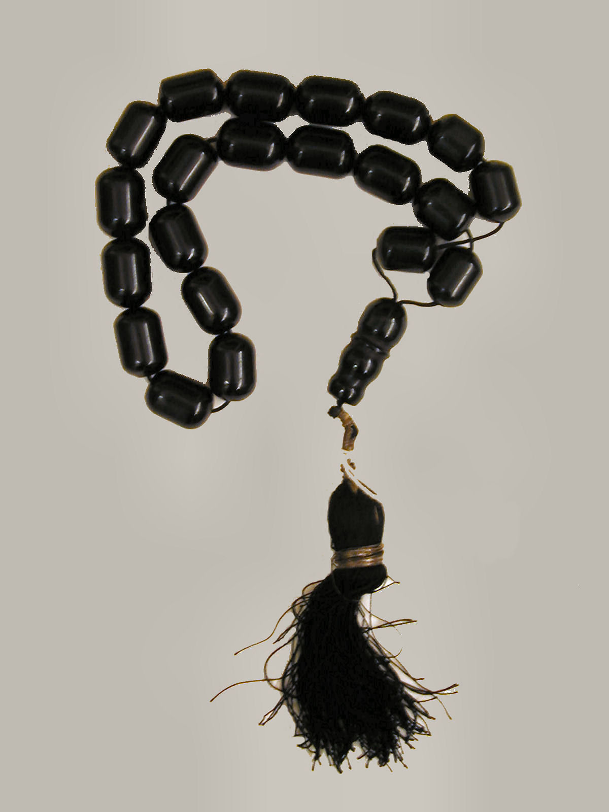 Turks bidsnoer van zwarte kralen met aan uiteinde zwarte franje