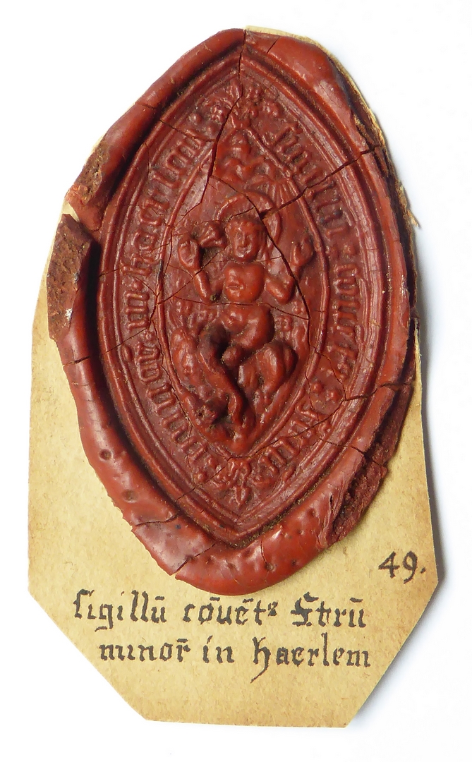 Afdruk van 16de(?) eeuws stempel met "Sigillum conventus fim minorum in Haarlem" met Christus